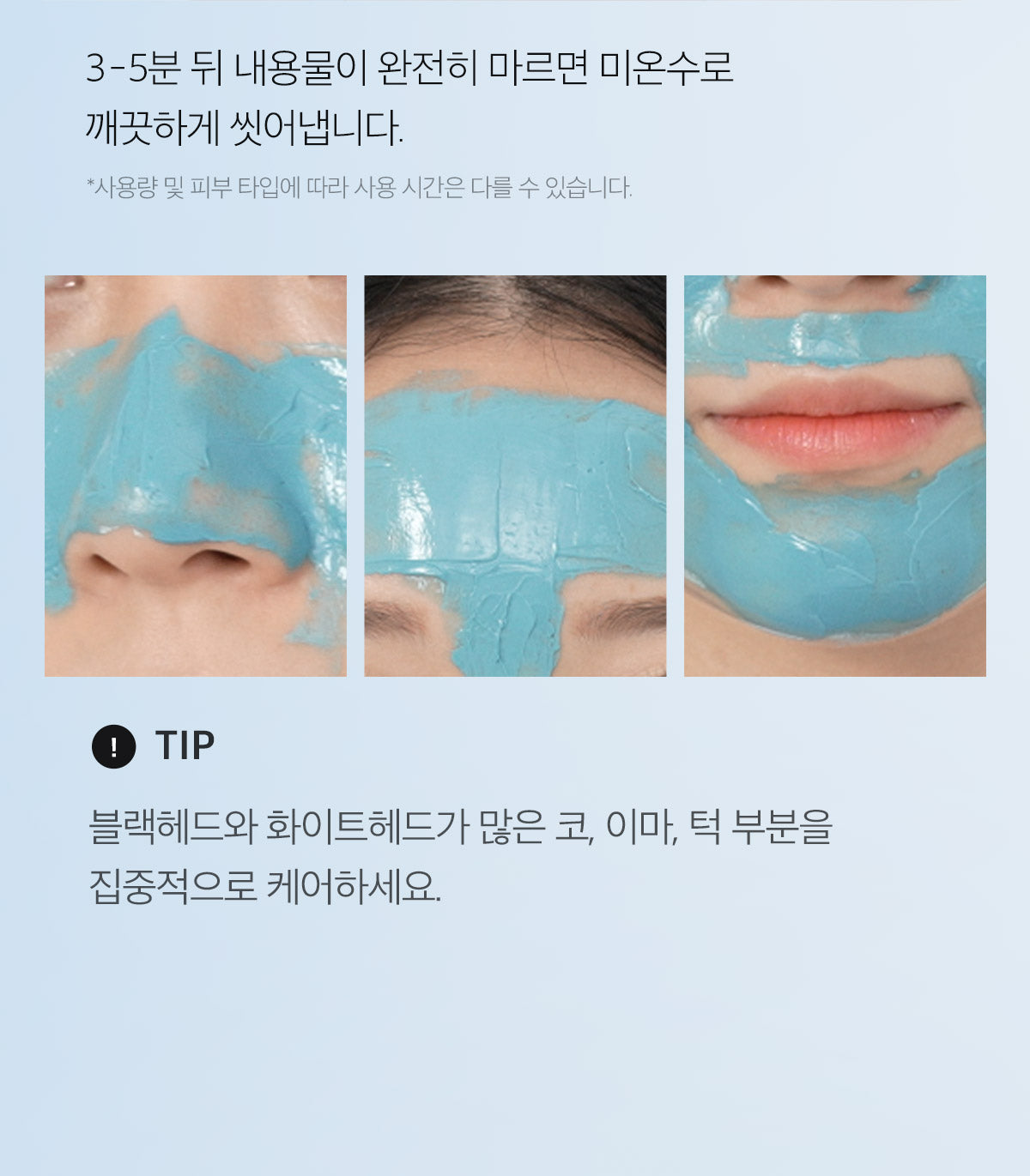 Tailored Usage Adapt the mask application to your skin’s needs, focusing on areas prone to blackheads and whiteheads for optimal results. The application time may vary based on the amount used and your skin type.