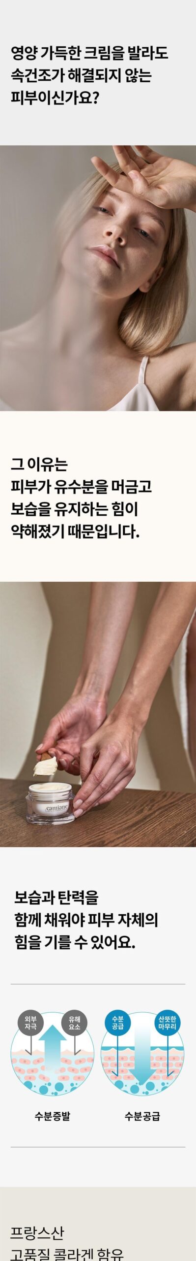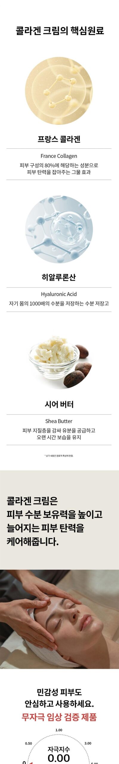 * Collagen cream increases skin moisture retention and takes care of sagging skin elasticity.