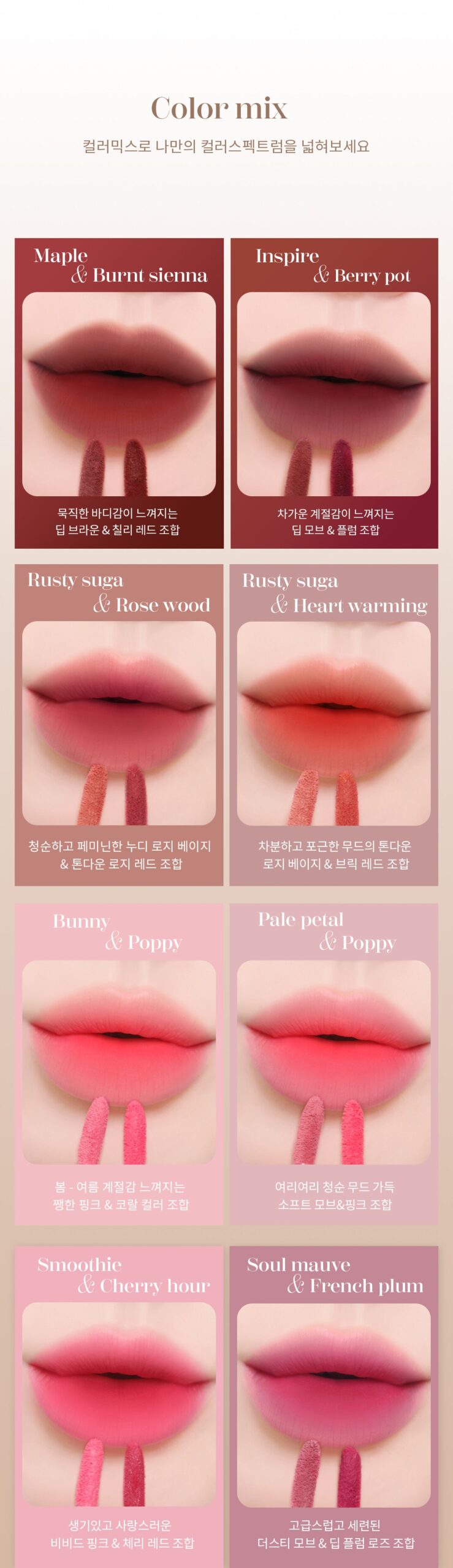 - تأثير التمويه: للحصول على مظهر غير لامع أكثر وضوحًا، انشري المنتج برفق من الداخل إلى الخارج من شفتيك باستخدام أطراف أصابعك.