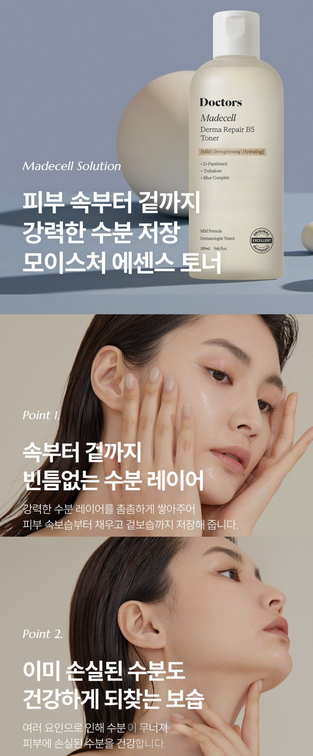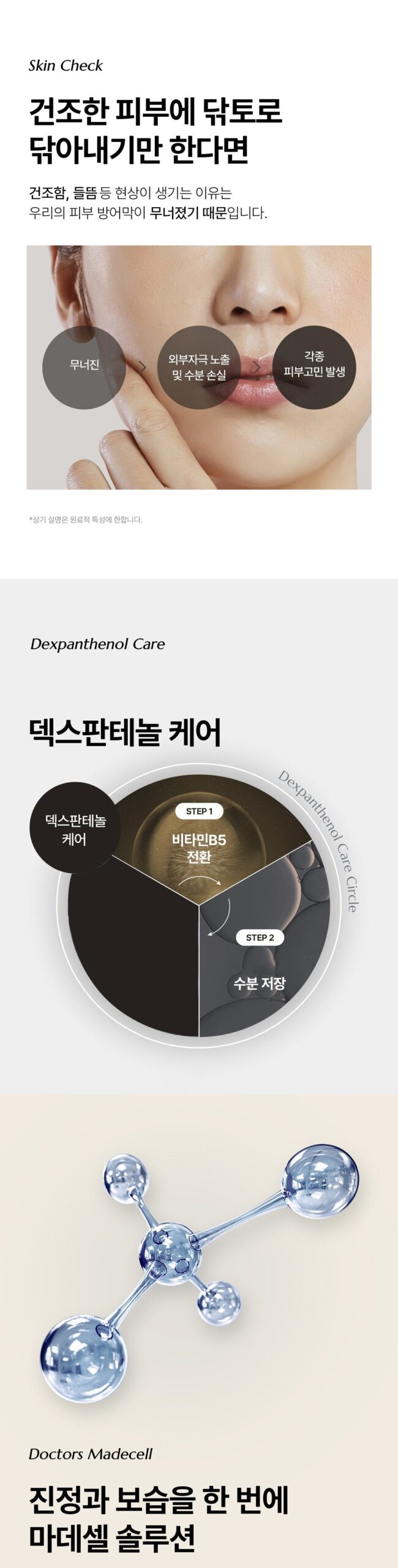 → On sensitive days that require special moisturizing and soothing, it is recommended to take an appropriate amount of Madecell toner and let it absorb, then apply a moisturizing and soothing cream once or twice to replenish moisture.