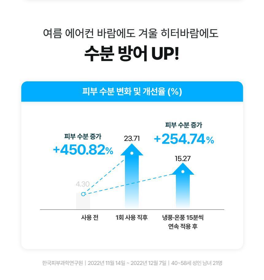Maintains moisture even in harsh conditions like summer air conditioning or winter heating, preventing skin issues caused by moisture loss and UV exposure. UV-induced redness is reduced by 178%.