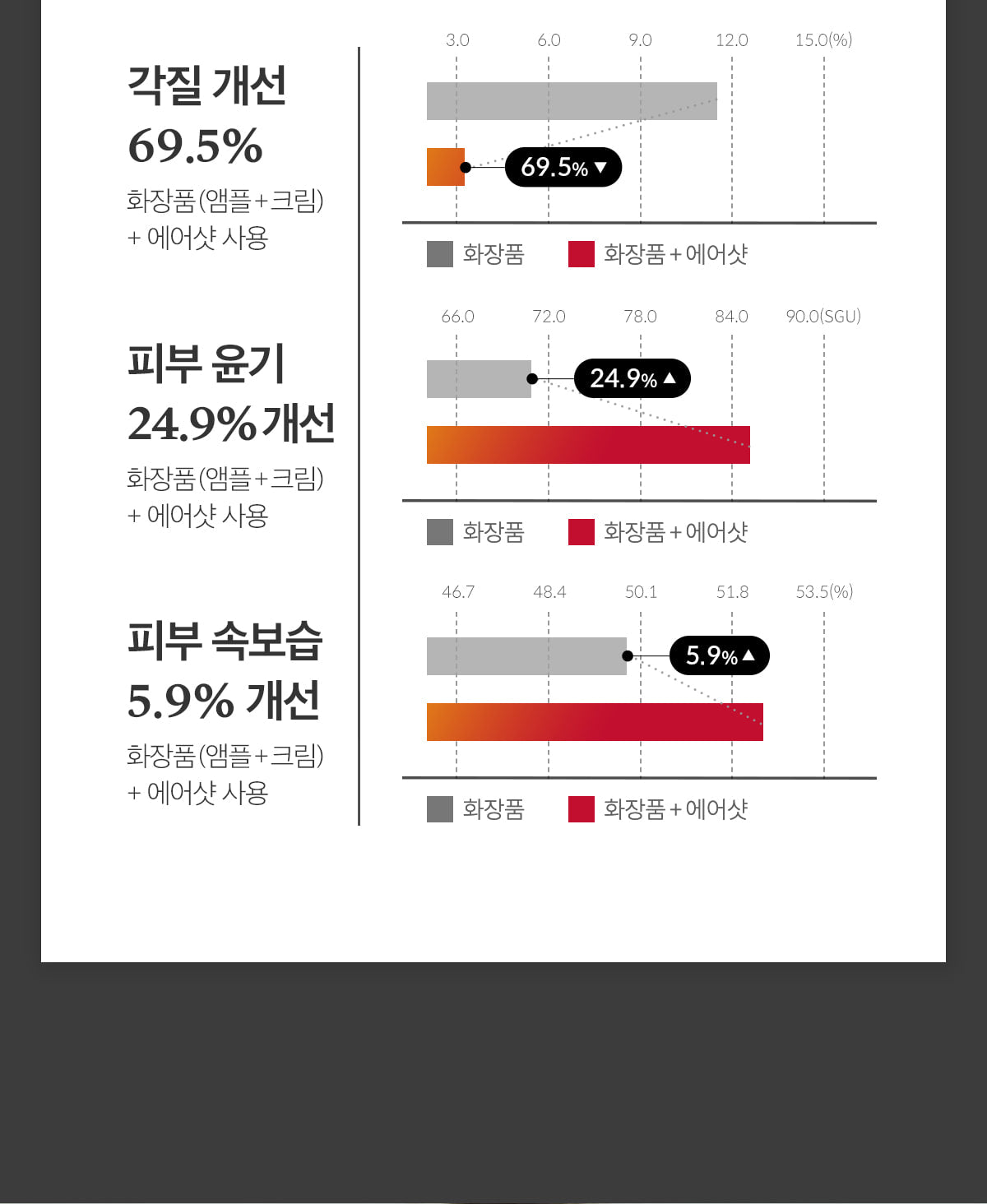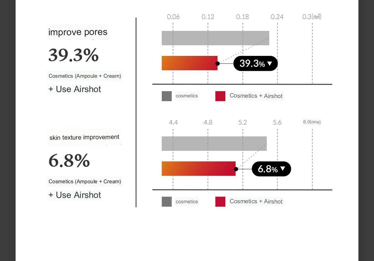 – Clear effect of Airshot on pores, skin texture (unevenness), dead skin cells, glow, moisture