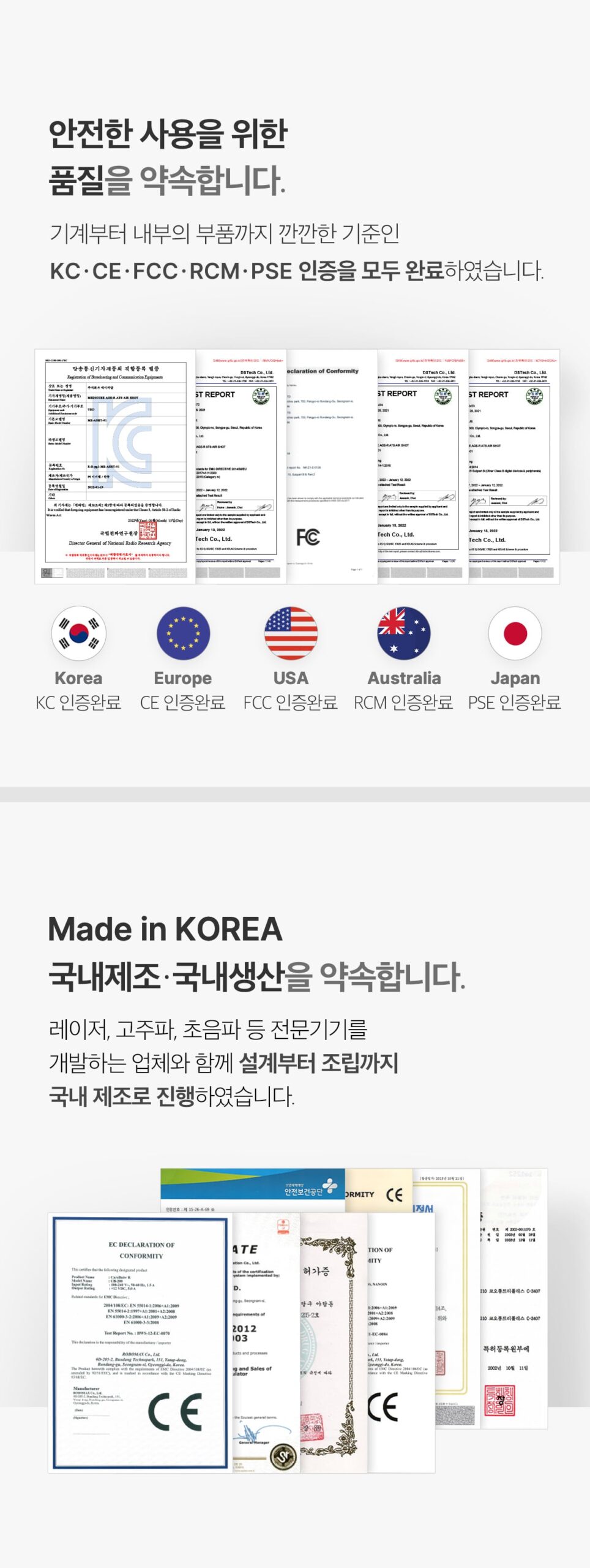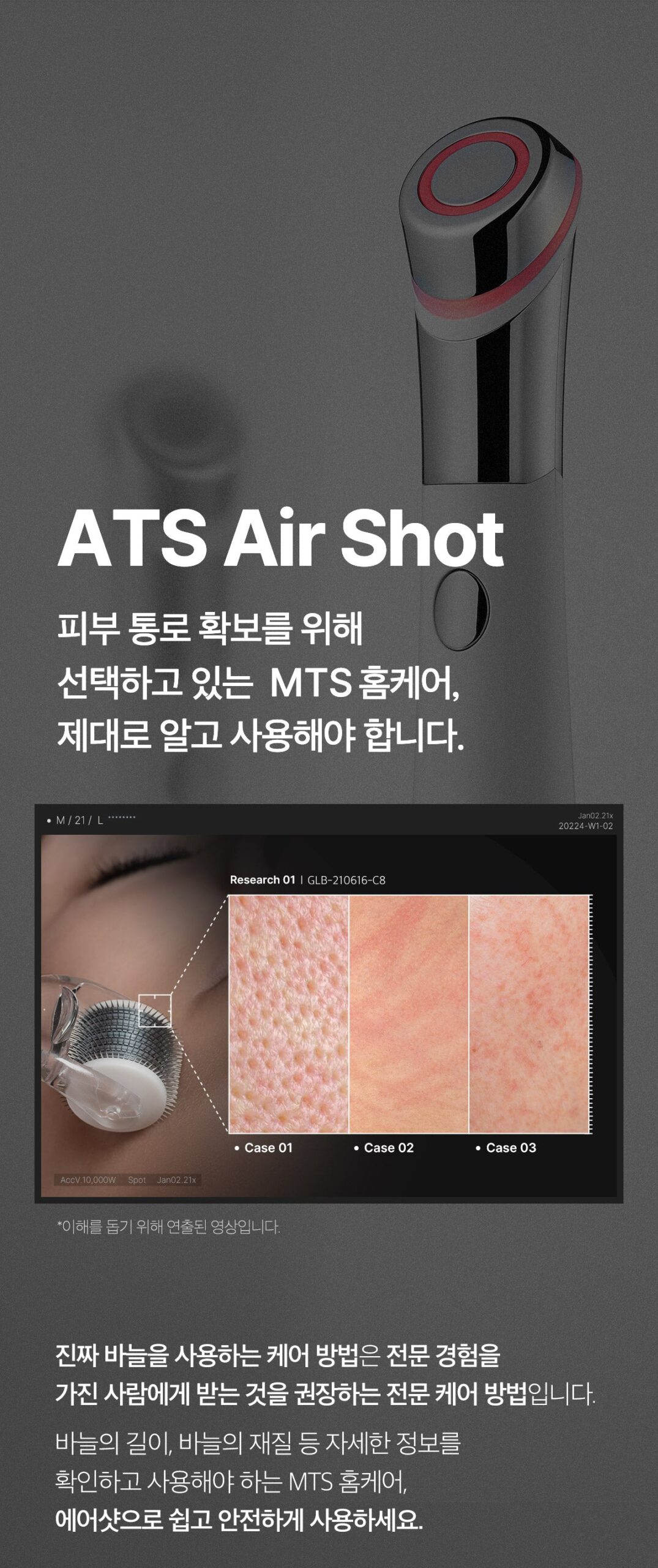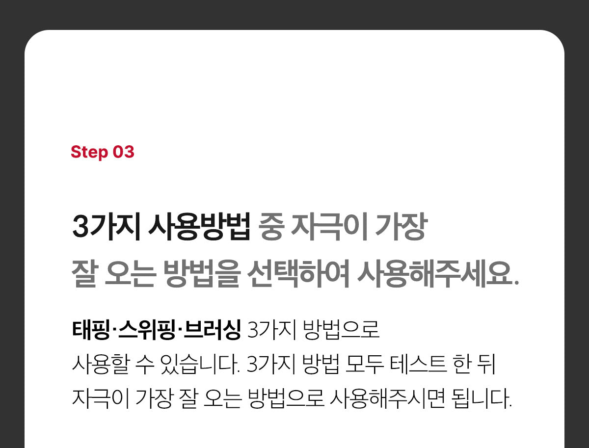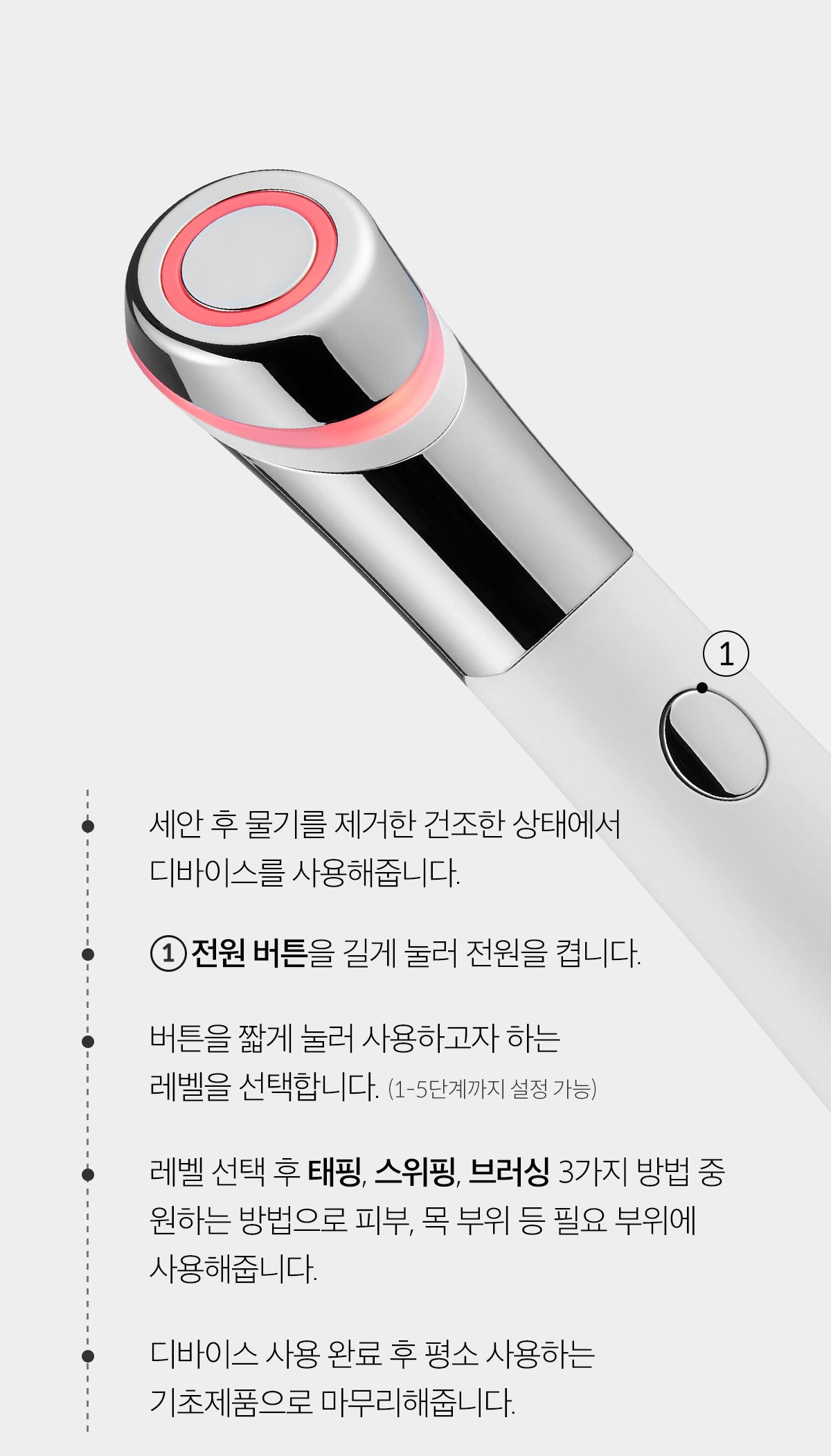 Safe and eco-friendly skin care is made possible by a hygienic electric microneedle that can be used continuously without the risk of skin scratches or wounds. The device has obtained all KC·CE·FCC·RCMPSE certifications. Manufactured domestically from design to assembly.