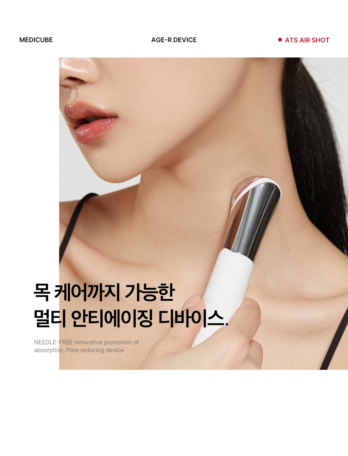 An innovative pore elasticity care device that does not damage the skin. The Airshot uses Toning Poration™, an independently developed technology by Medicube. This technology irradiates high-voltage electricity to the skin for a very short time, forming fine holes without damaging the skin to improve its liveliness.