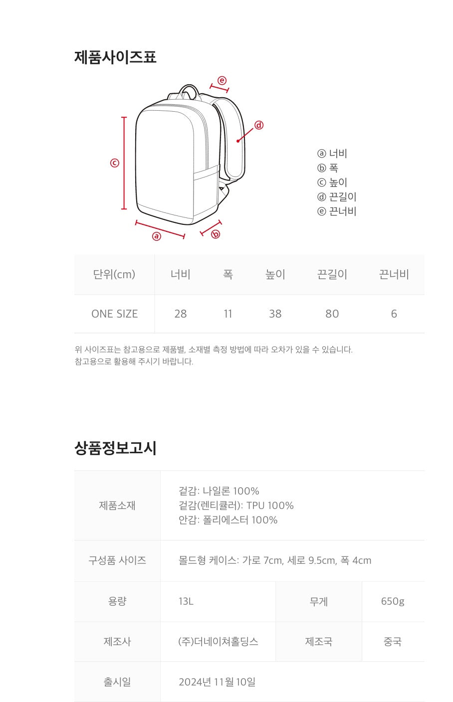 - Backpack Size: 28cm (W) × 11cm (D) × 38cm (H)