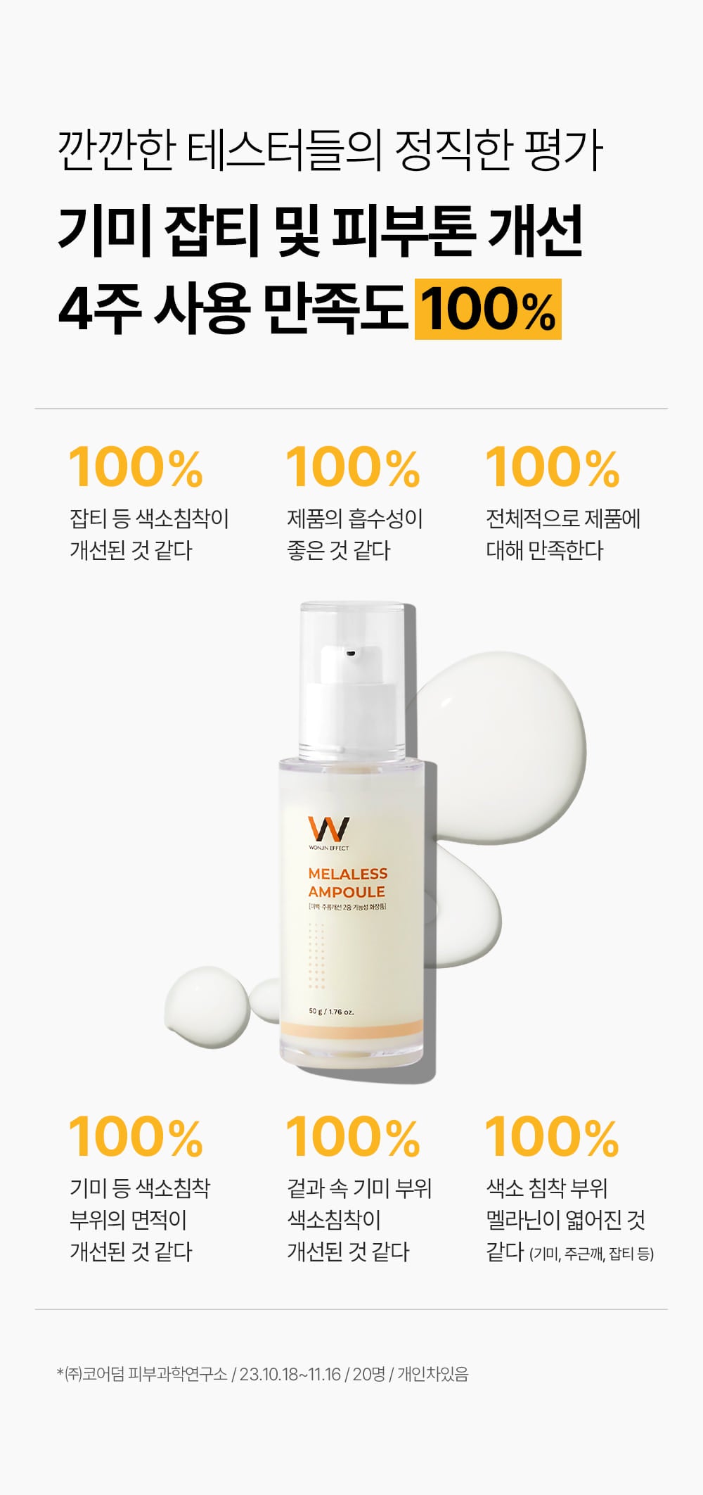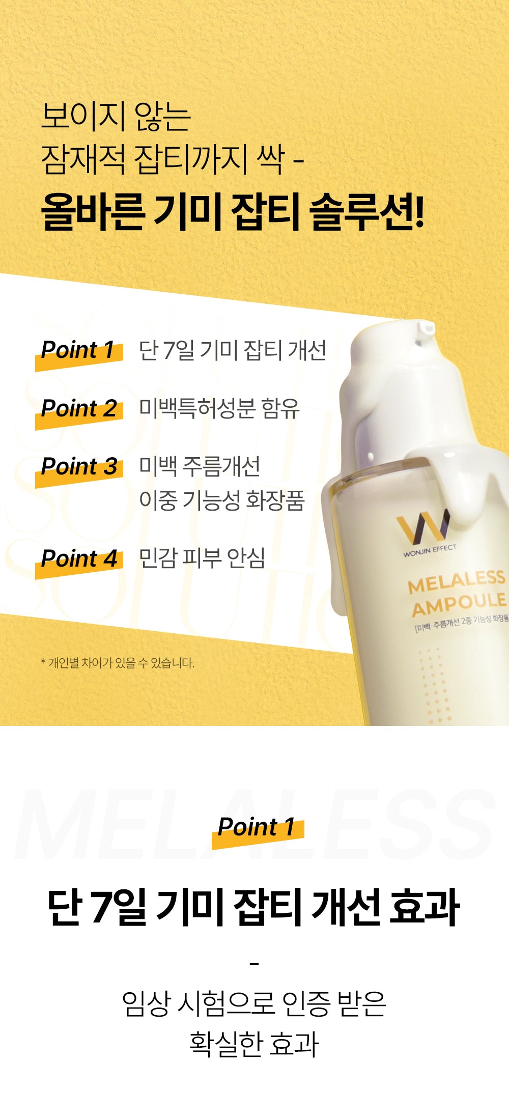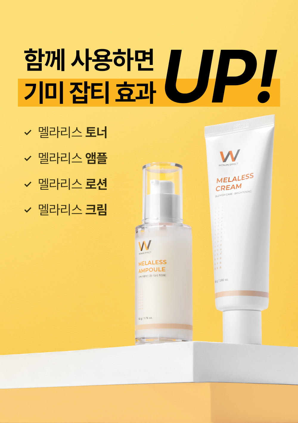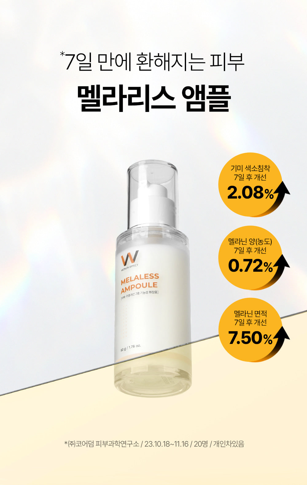Achieve radiant, even-toned, and youthful skin with WONJIN EFFECT MELALESS AMPOULE! ✨