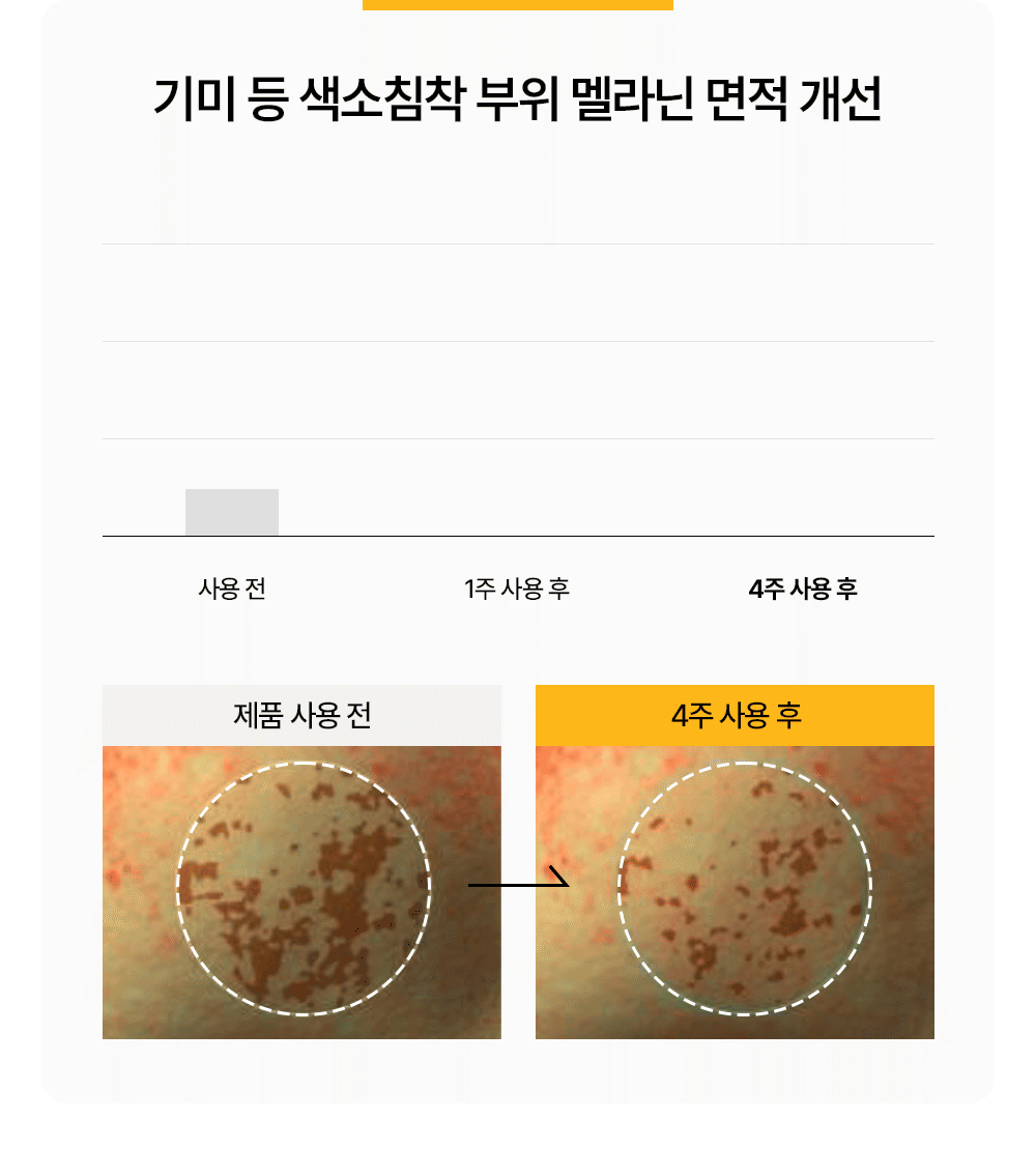 - Lightened melanin in dark spots, freckles, and blemishes – 100%