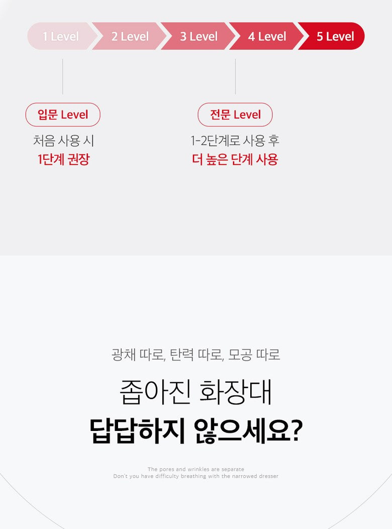 - 5 adjustable intensity levels tailored to individual skin needs.