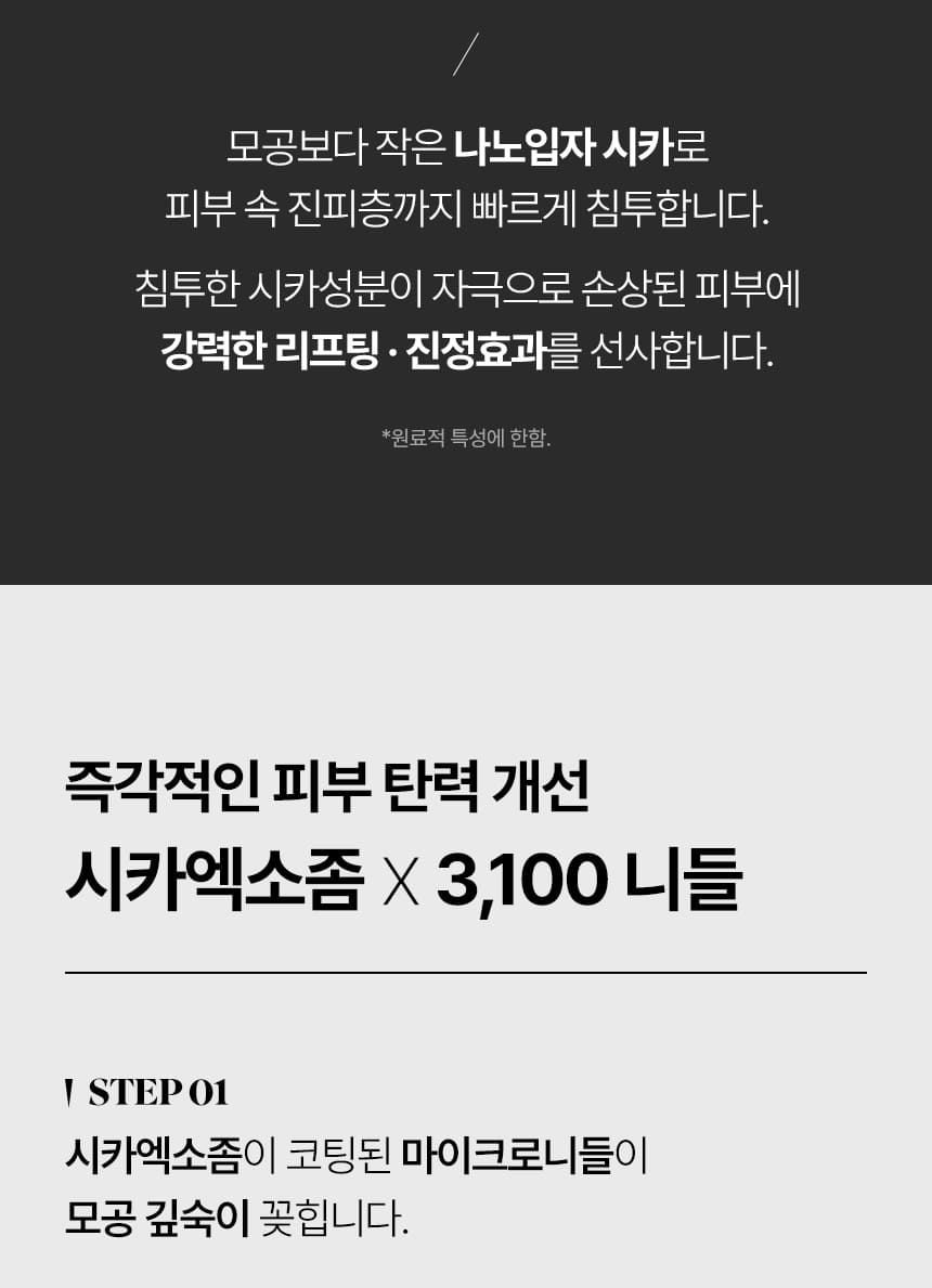 Unlike traditional skincare products that sit on the surface, Cica Exosome nanoparticles, which are smaller than pores, penetrate deep into the dermis layer for: