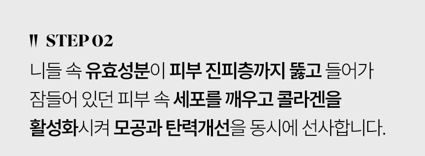 Once inside the skin, the active ingredients stimulate collagen production, awaken skin cells, and improve pores and elasticity.