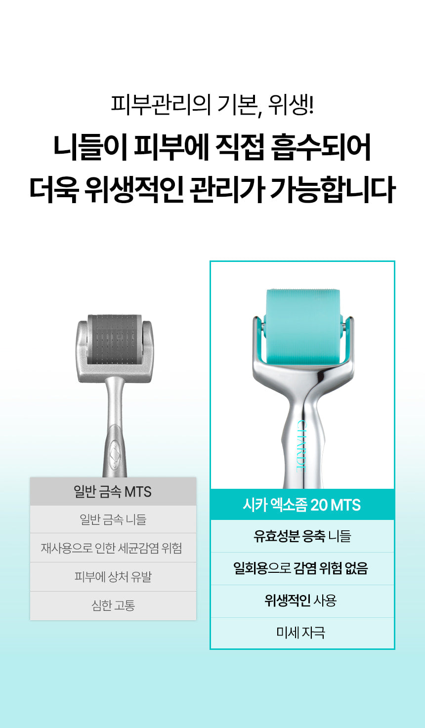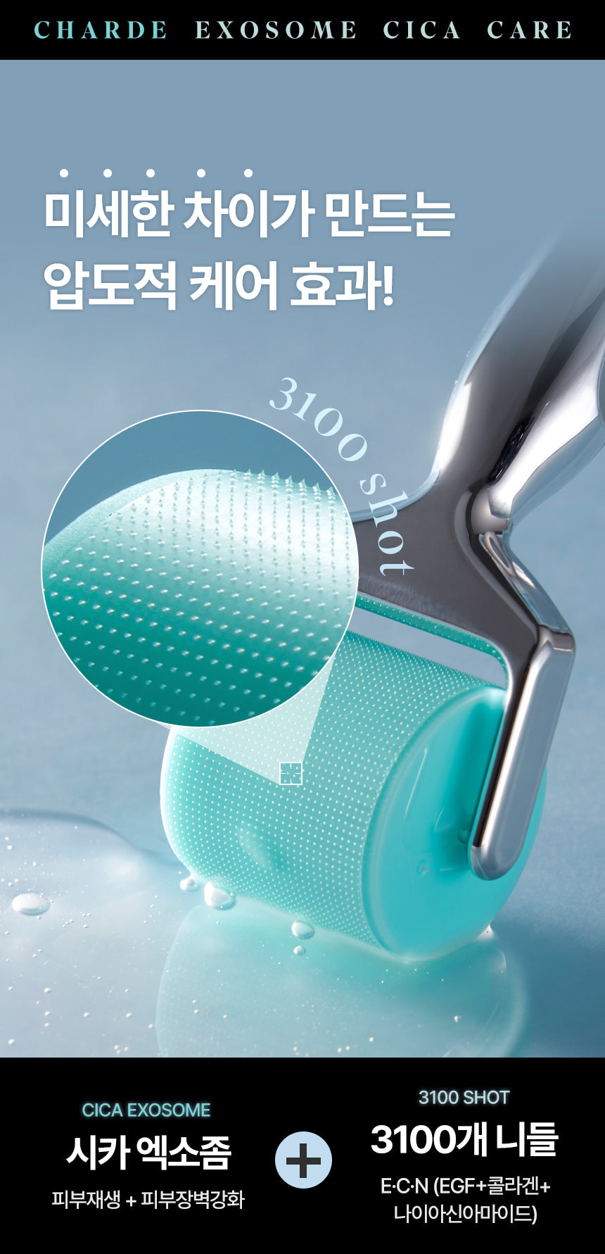 1️⃣ Roll the skin using CHARDE Cica Exosome 20 MTS roller.