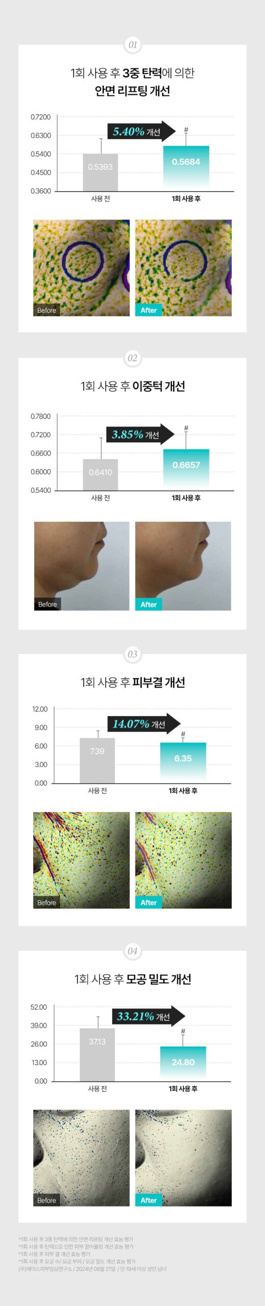 With just one use, experience visible improvements in facial lifting, pore reduction, and smoother skin texture.