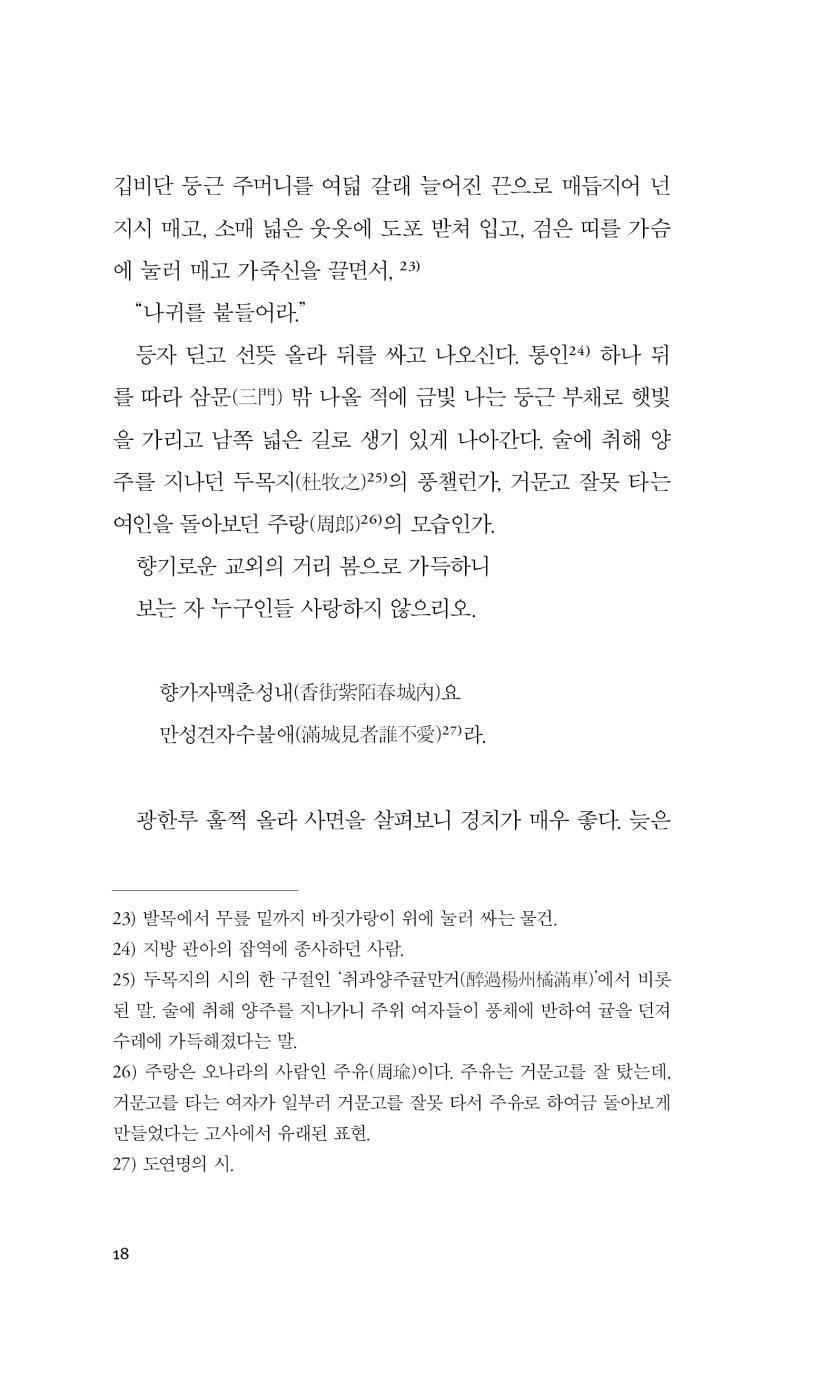 This edition of Chunhyangjeon is based on the Yeolnyeo Chunhyang Sujeolga 84-chapter version from the Jeonju woodblock prints and the 30-chapter version from the Gyeongpan woodblock prints. The 84-chapter version, part of the Byeol Chunhyangjeon series, underwent repeated revisions and refinements in the 19th century and is regarded as one of the most artistically accomplished versions, along with Namwon Gosa. It vividly captures the vibrancy of Chunhyangjeon, making it a definitive edition for modern readers. Additionally, this book includes a reproduction of the woodblock print edition of Yeorye Chunhyang Sujeolga.