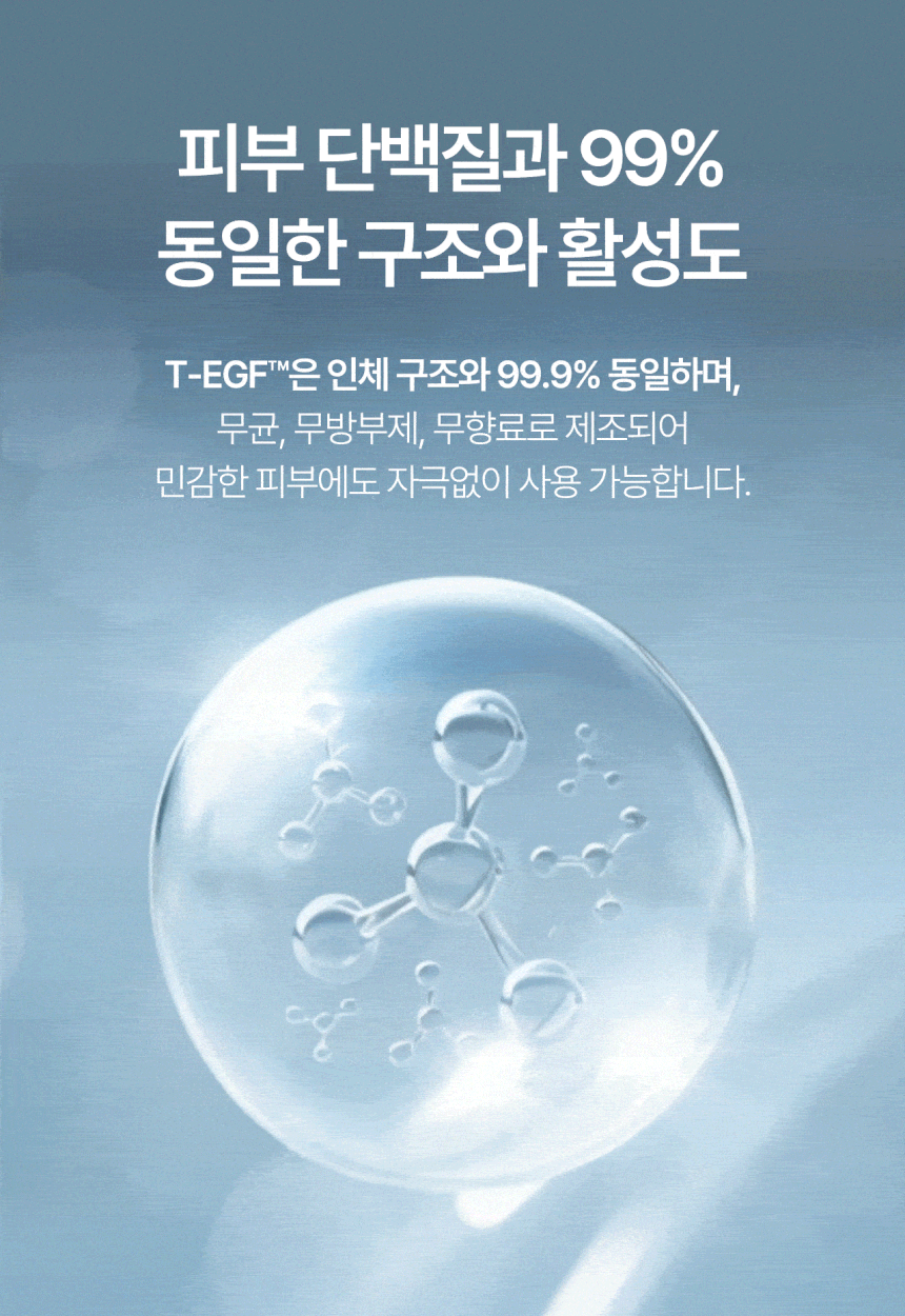 Con una concentración óptima de 4 ppm de EGF de alta pureza, esta ampolla está formulada para ser 99.9% idéntica a las proteínas de la piel humana, lo que la hace adecuada incluso para pieles sensibles. Su fórmula estéril, sin conservantes ni fragancias minimiza la irritación, ofreciendo una experiencia pura y suave.