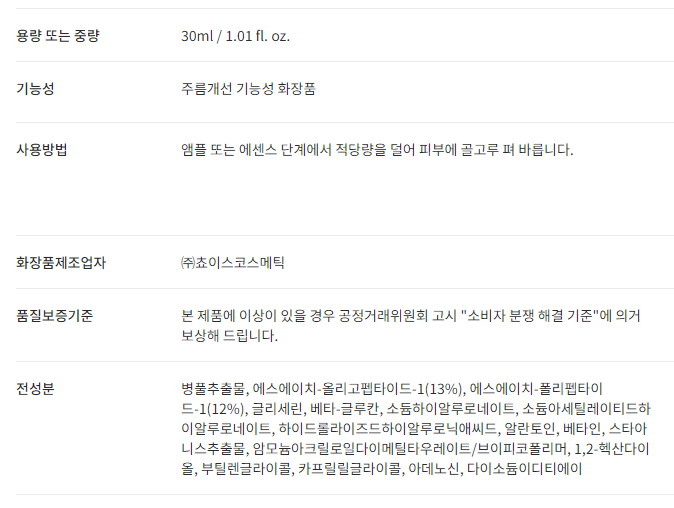 Adenosine : A substance that naturally exists in all living things and helps improve wrinkles and elasticity care.