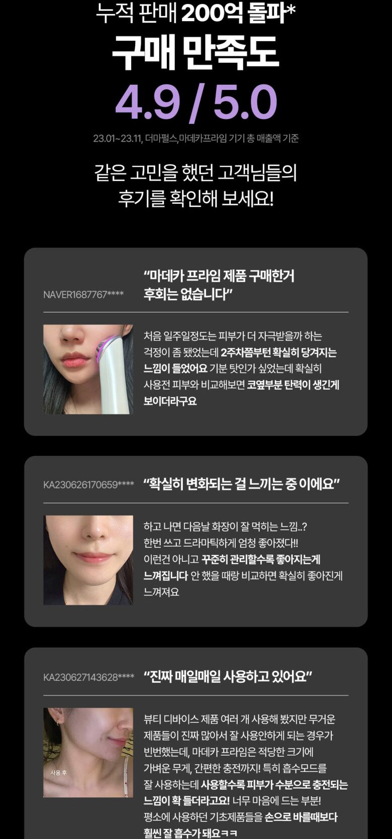 初めは、本当にこの美容デバイスがそんなに効果的だとは思えませんでした。でも、数回使用しただけで明らかな変化を感じるようになりました。特に引き上げ効果には驚かされました。この製品のエラスティシティモードのお陰で、顔全体が引き締まって見えるんです。その上、美白と潤いも加わり、一度試してみて正解でした。他にも、このブースターアンプルとの組み合わせが抜群。もっと早く買えば良かったなと思います!感動的な美しさへの第一歩を踏み出せた気分です。