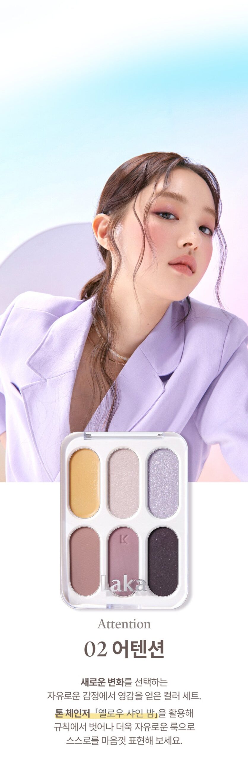 A color set inspired by the free feelings that a new beginning brings. Shades resembling the transparent sparkling blue water, warm earth, and reddish brown sun complete a look that feels warm and refreshing.
