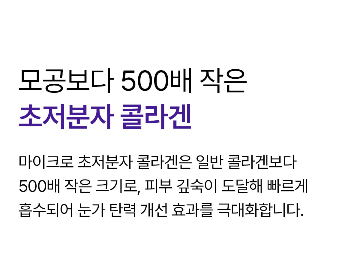 Ultra-low molecular collagen absorbs quickly and deeply, delivering powerful anti-aging benefits to the delicate eye area.