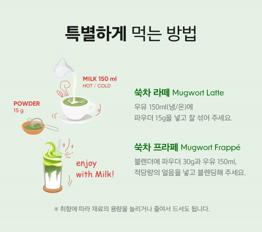 كان لي شغف لتجربة نكهة ماتشا القوي، وبصراحة استمتعت حقًا بمشروب لاتيه دافئ باستخدام مساحيق SSANGGYE. عطره وتذوقه يعيدني لأيام جميلة في الغابة حيث أنصح الجميع بالتجربة!