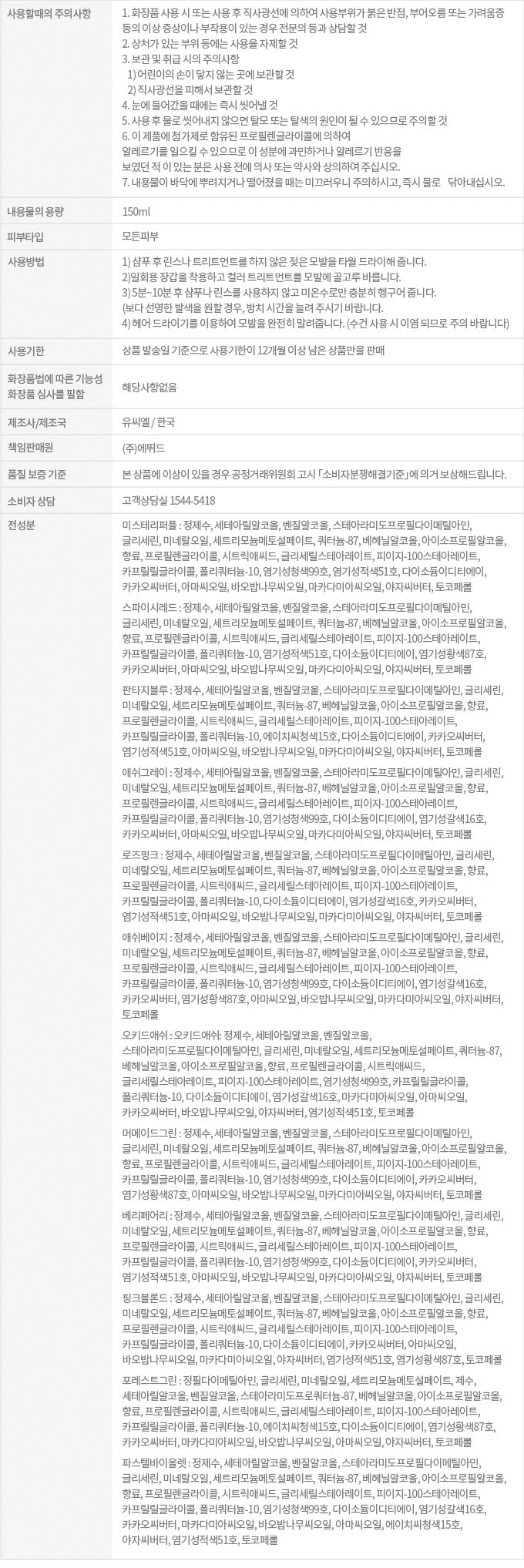 - 個人の髪の状態やシャンプーの習慣によっては、1週間以上持続する場合があります。(シャンプーを継続的に使用すると、色が薄くなります。)
