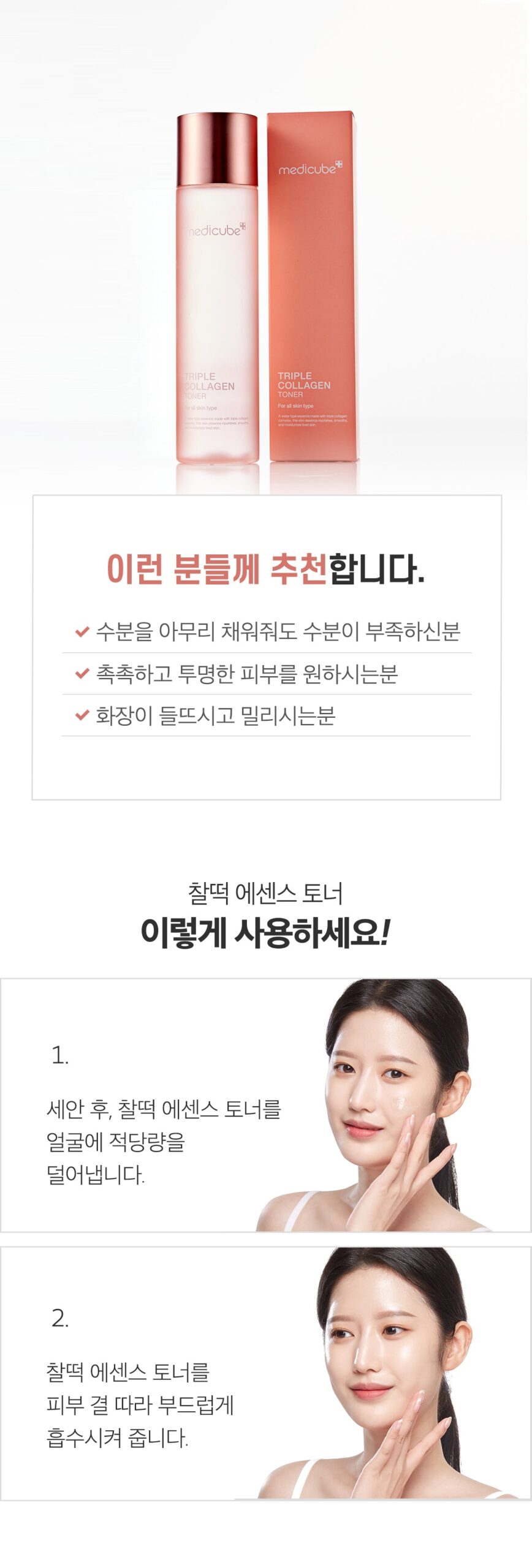 Embark on a journey to deeply hydrated skin with the Medicube Triple Collagen Toner 4.0. This essence toner is your first step towards a firm and moisturized complexion, leveraging the innovative Triple Collagen Complex.