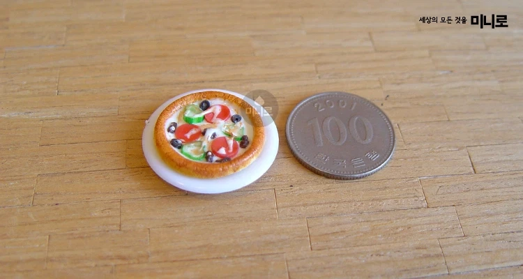 肉、野菜、チーズをカラフルに組み合わせた、本格的なイタリアンスタイルの食事を再現したリアルなミニチュアピザです。
