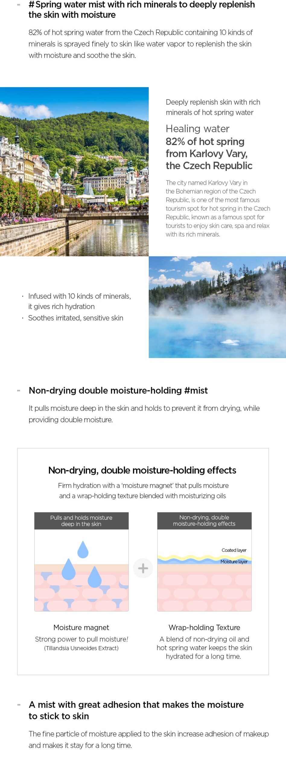 Immerse your skin in the rejuvenating properties of our Essential Mool Micro Fitting Mist, featuring a remarkable 82% concentration of mineral-rich hot spring water sourced directly from Karlovy Vary in the Czech Republic. This prestigious spa destination is renowned for its healing waters, offering a wealth of minerals to nourish and revitalize your skin.
