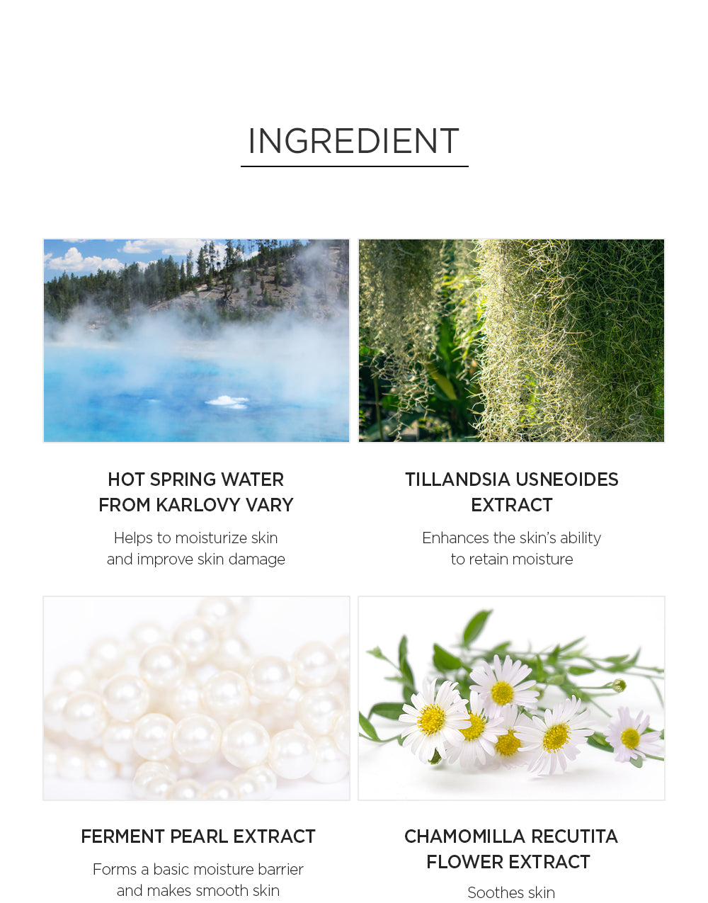 - Hot Spring Water from Karlovy Vary: Hydrates and improves skin health.