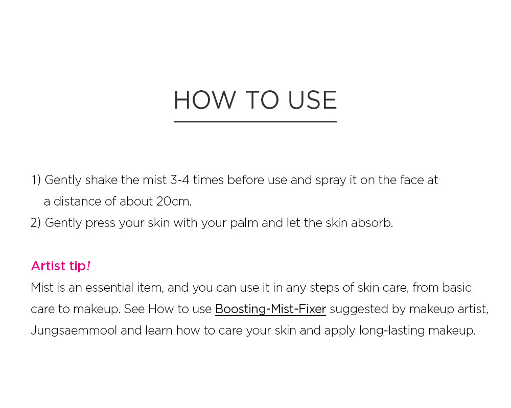 - Makeup Fixer: Apply post-makeup for improved longevity and finish.