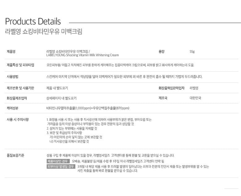 I recently started using the Label Young Shocking Vitamin Milk Whitening Cream, and wow, I’m really impressed! This cream’s got this mineral-rich milk vibe going on that totally helped brighten my skin. At first, I was a bit skeptical ’cause I’ve tried loads of whitening creams before that promised everything but didn’t deliver. But man, this one’s different. It feels smooth applying it at night—like I’m treating myself to some fancy skincare! The next morning, my face looked noticeably more radiant and those pesky dark spots? They’re definitely starting to lighten up. Definitely worth keeping in my routine!