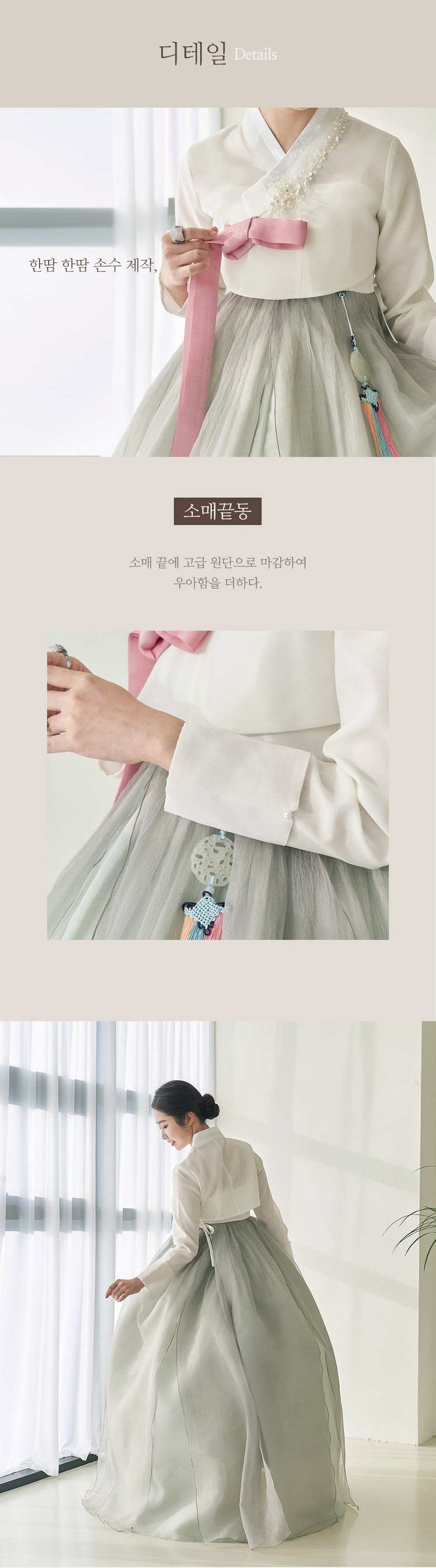 Traditional sewing methods are applied to retain the natural texture and charm of the hanbok fabric.