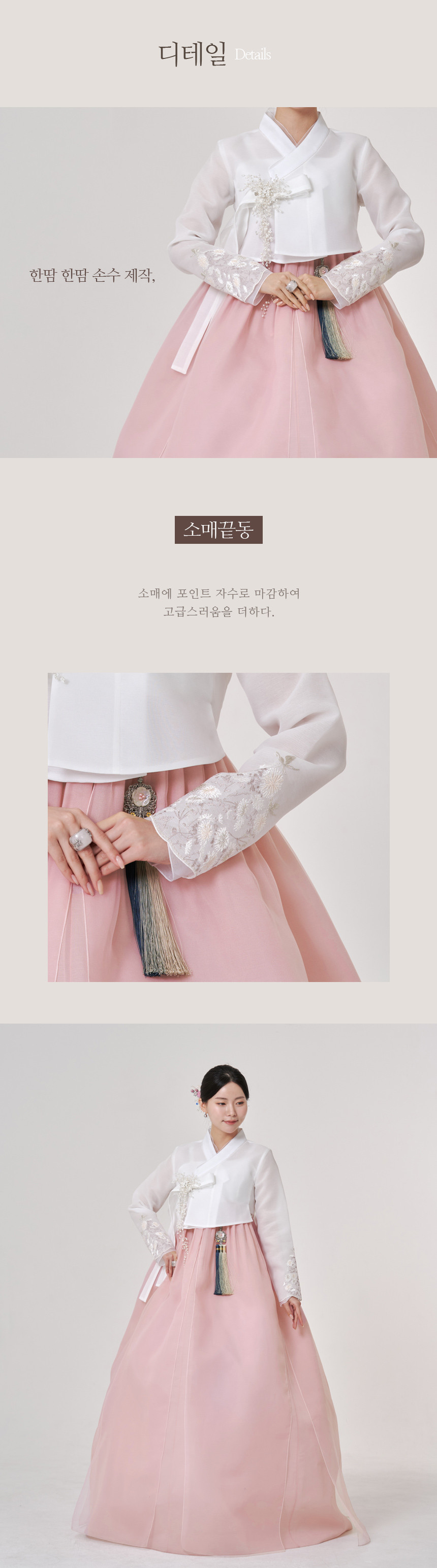 - Split Skirt: Traditional sewing preserves the texture of the thin Hanbok fabric, giving it a luxurious and glamorous look. The winged skirt design spreads out beautifully like a lotus flower when you sit down.