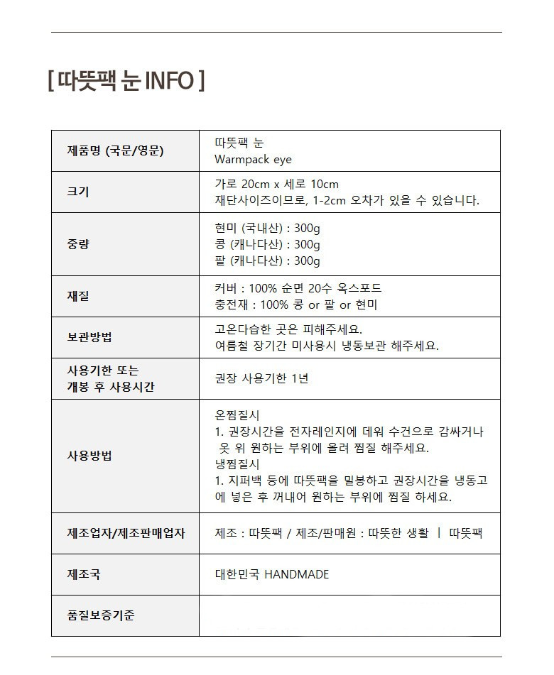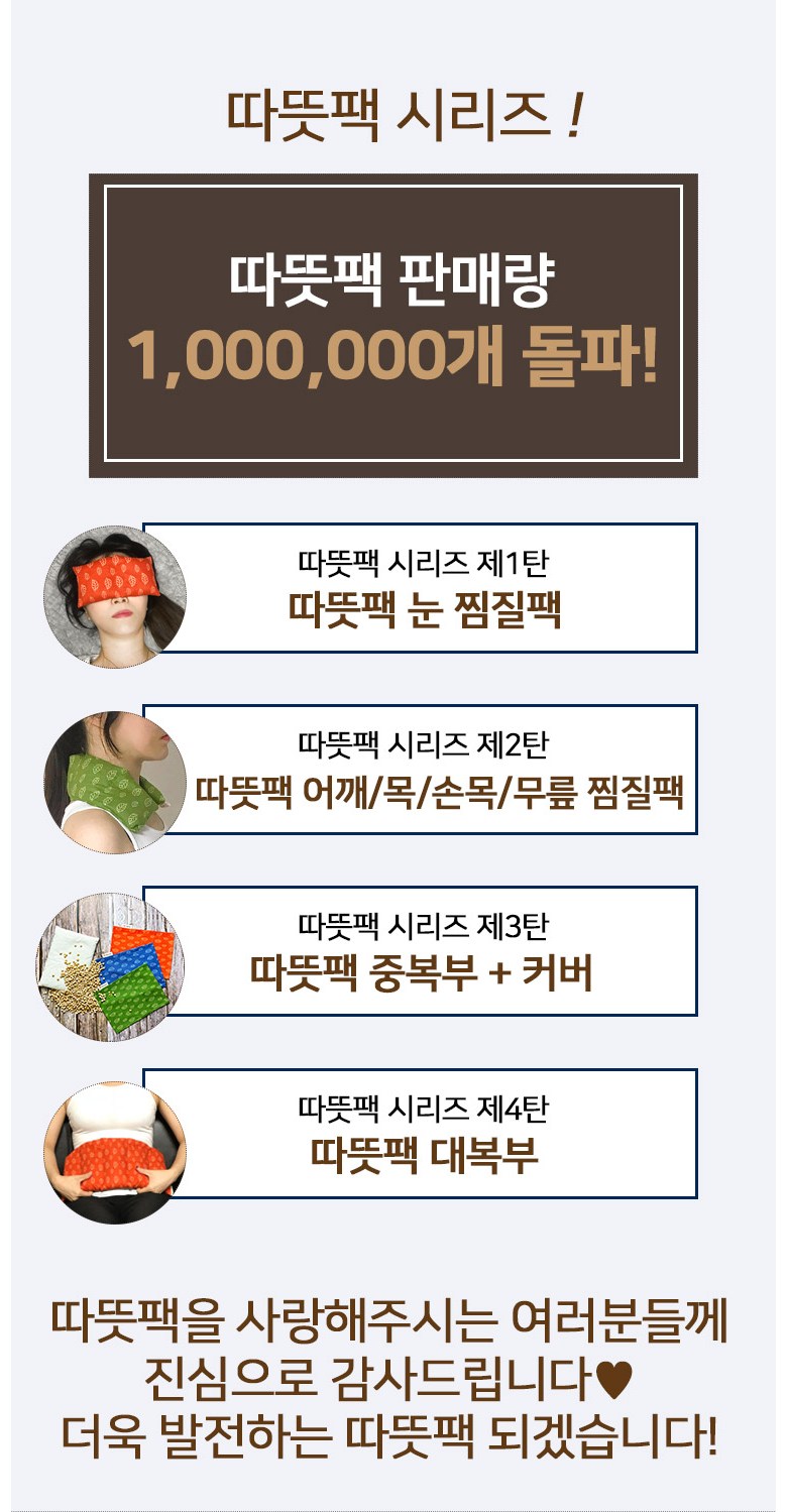 Introducing the Warm Pack Series—a handcrafted, all-natural wellness solution trusted by over a million users. Designed for everyday comfort, from dry, tired eyes to aching joints, this microwaveable pack uses 100% Korean-grown grains and pure cotton for gentle, effective heat and cold therapy.