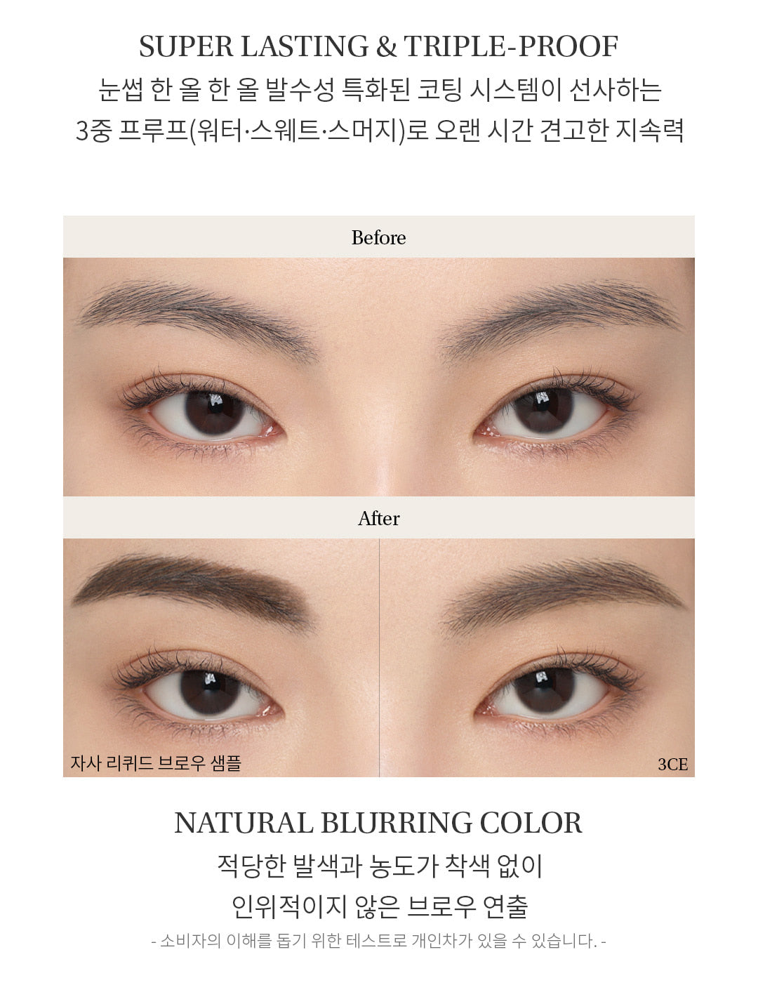 The 3CE All-Rounder Brow has completely transformed my eyebrow routine. The super lasting formula truly lives up to its claim; I wore it through a hot, humid day and there was no smudging at all. The triple-proof feature means sweat and water just slide right off, which is essential for my active lifestyle. Additionally, the airy texture allows for easy blending without clumping or stickiness, giving me natural-looking brows that last from morning to night. I’m particularly impressed with how well it mimics real brow hairs thanks to the non-artificial glow of its color.