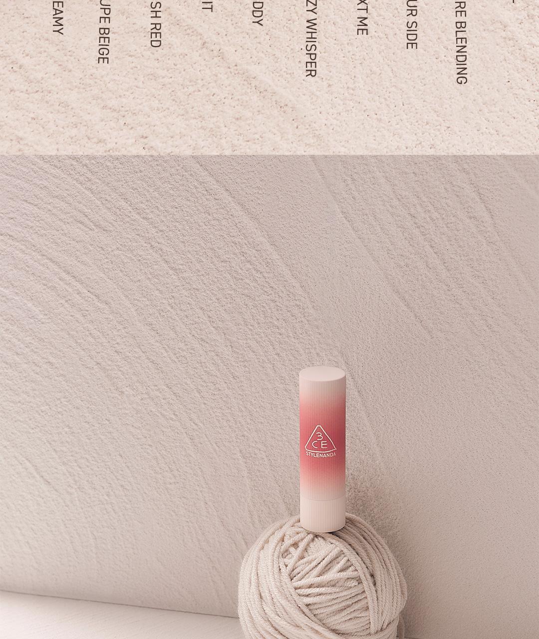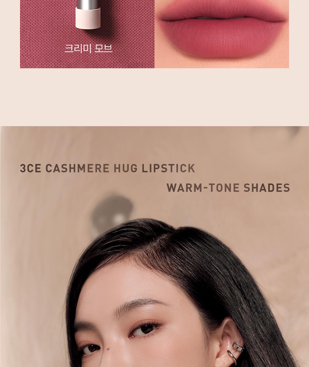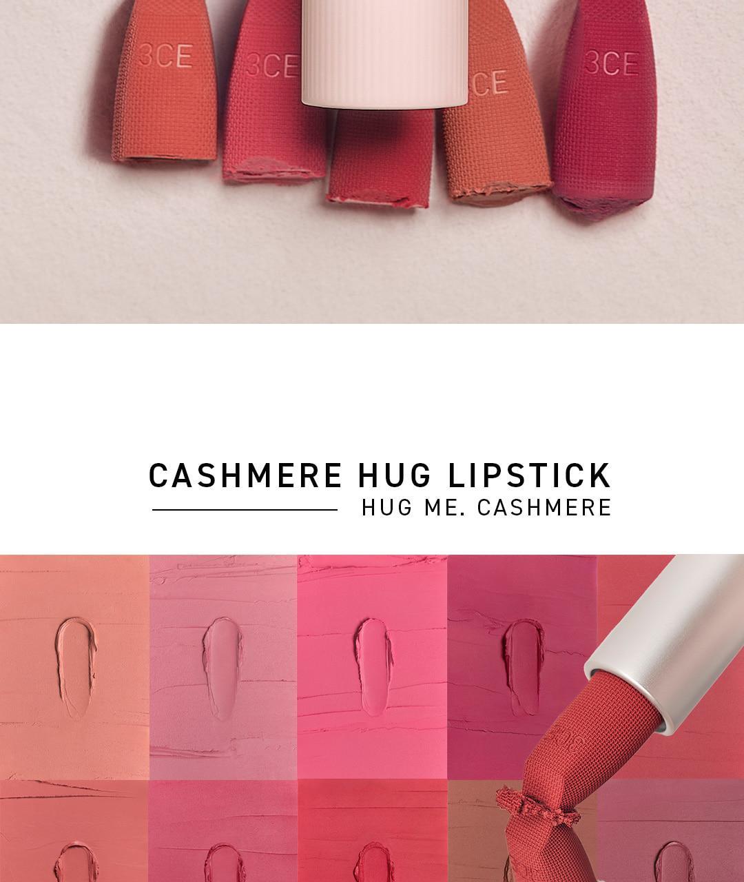 Indulge your lips with the softness of cashmere—experience the 3CE Cashmere Hug Lipstick today!