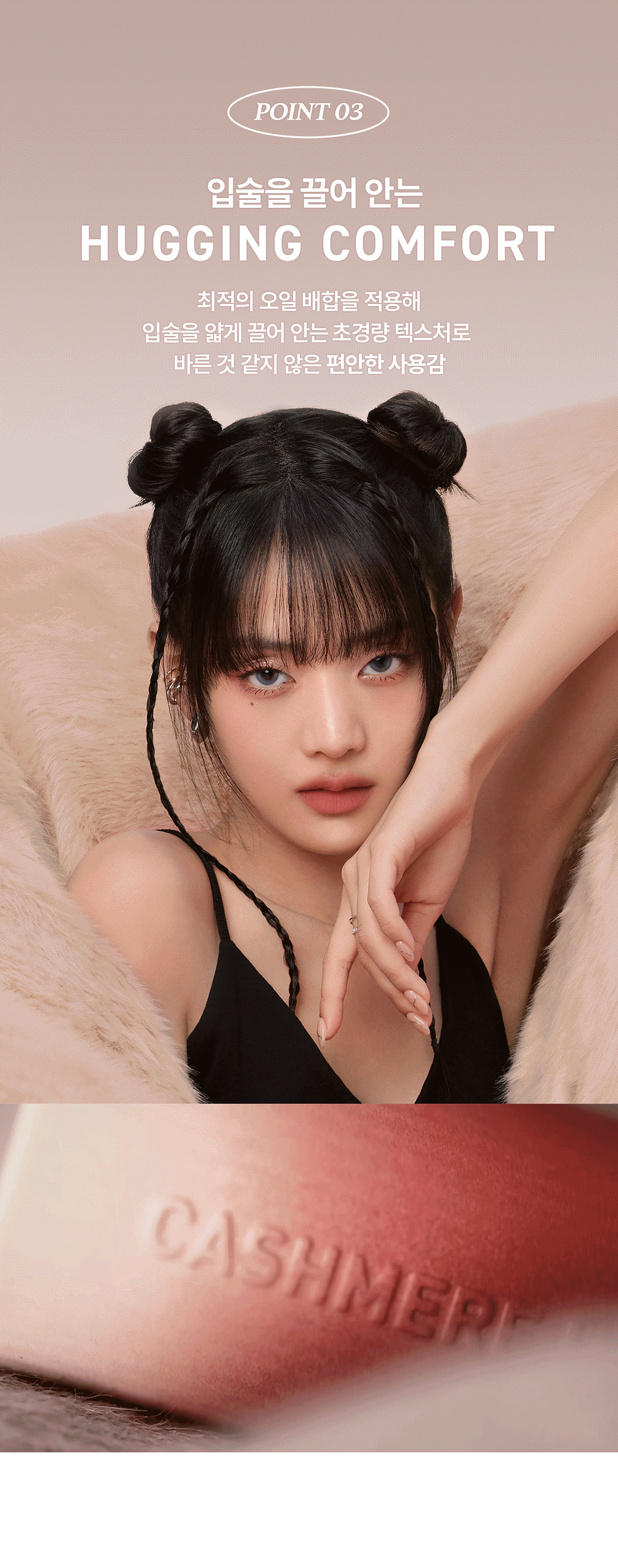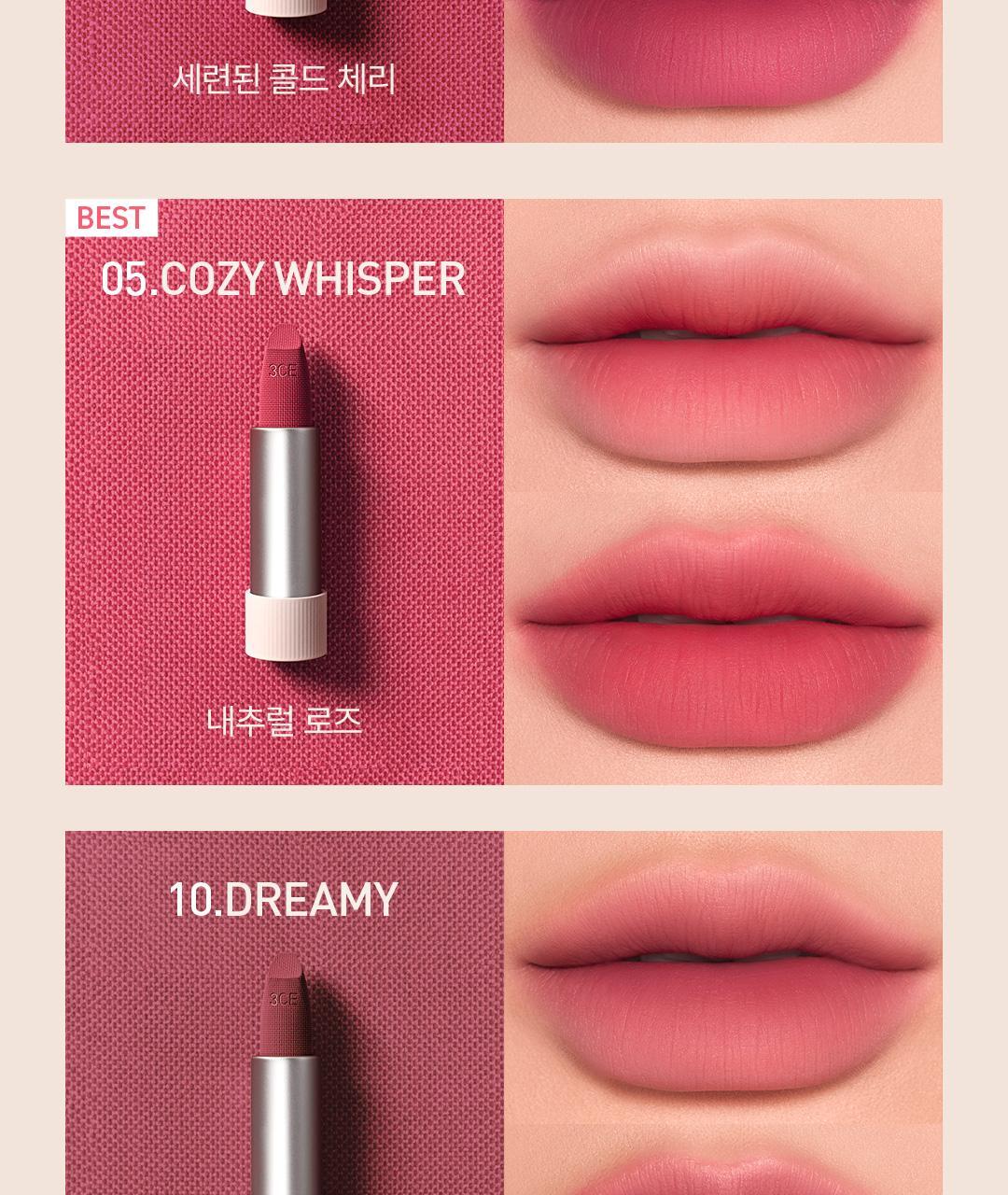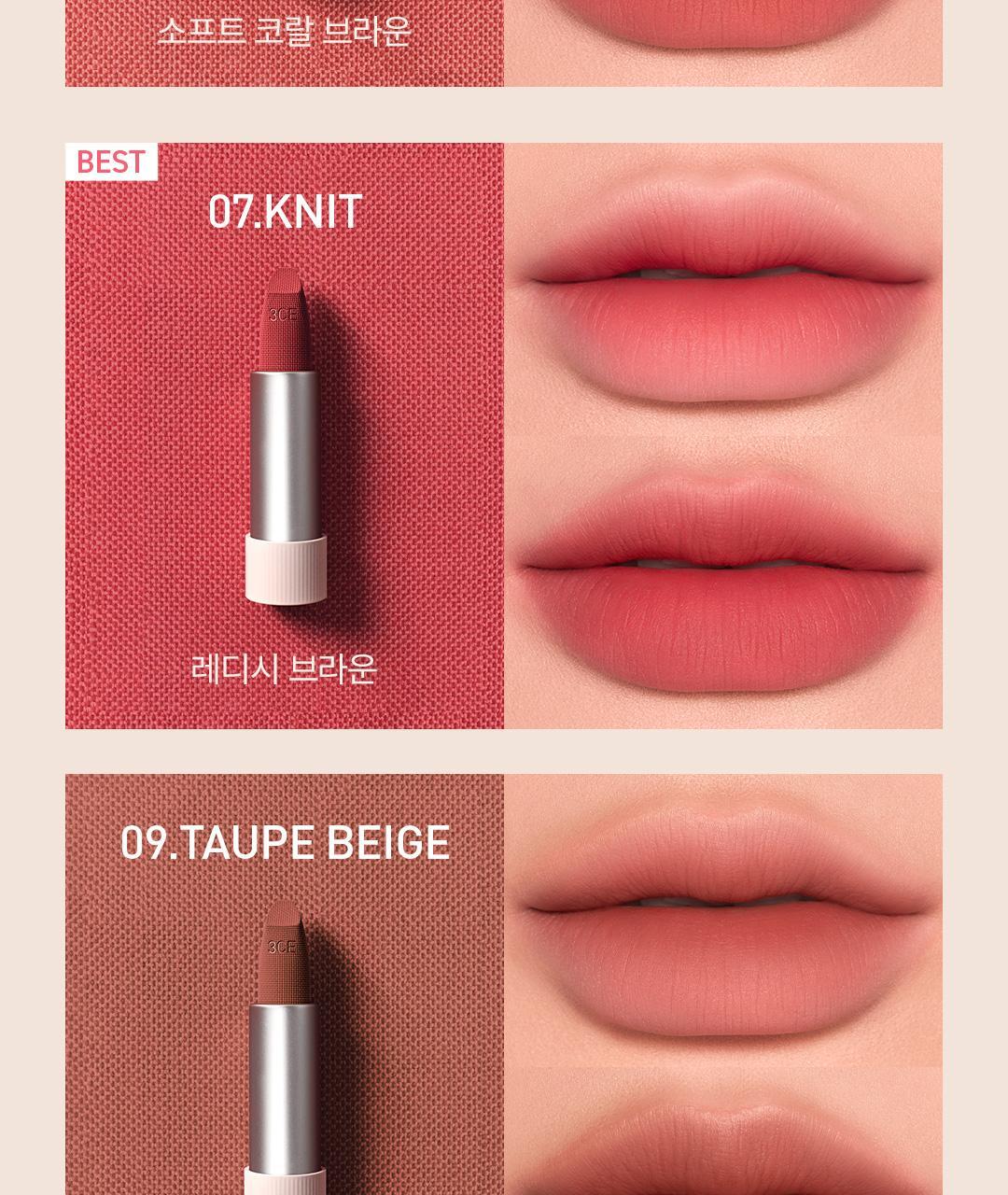 Indulge your lips with the softness of cashmere—experience the 3CE Cashmere Hug Lipstick today!