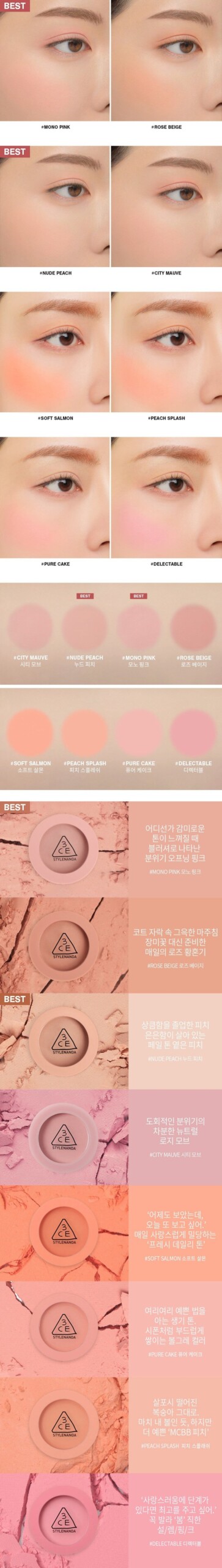 I’ve been on the hunt for a great blush, and let me tell ya, this 3CE Face Blush really holds its own against others I’ve tried. I’ve used brands like NARS and Benefit before, which are fab but can feel heavy at times. This one? It’s got such a smooth texture that glides right onto your cheeks without looking patchy or caked up—seriously, it’s as if you’re painting with watercolors! The color just sinks in beautifully; it feels more natural than those highly pigmented options where you need to worry about overdoing it. Plus, it lasts through my long workdays without needing touch-ups! Overall, I’d say if you’re after something subtle yet effective—definitely give this one a shot.