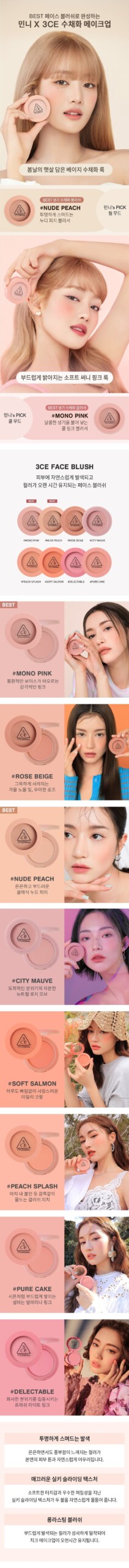 I’ve been on the hunt for a great blush, and let me tell ya, this 3CE Face Blush really holds its own against others I’ve tried. I’ve used brands like NARS and Benefit before, which are fab but can feel heavy at times. This one? It’s got such a smooth texture that glides right onto your cheeks without looking patchy or caked up—seriously, it’s as if you’re painting with watercolors! The color just sinks in beautifully; it feels more natural than those highly pigmented options where you need to worry about overdoing it. Plus, it lasts through my long workdays without needing touch-ups! Overall, I’d say if you’re after something subtle yet effective—definitely give this one a shot.