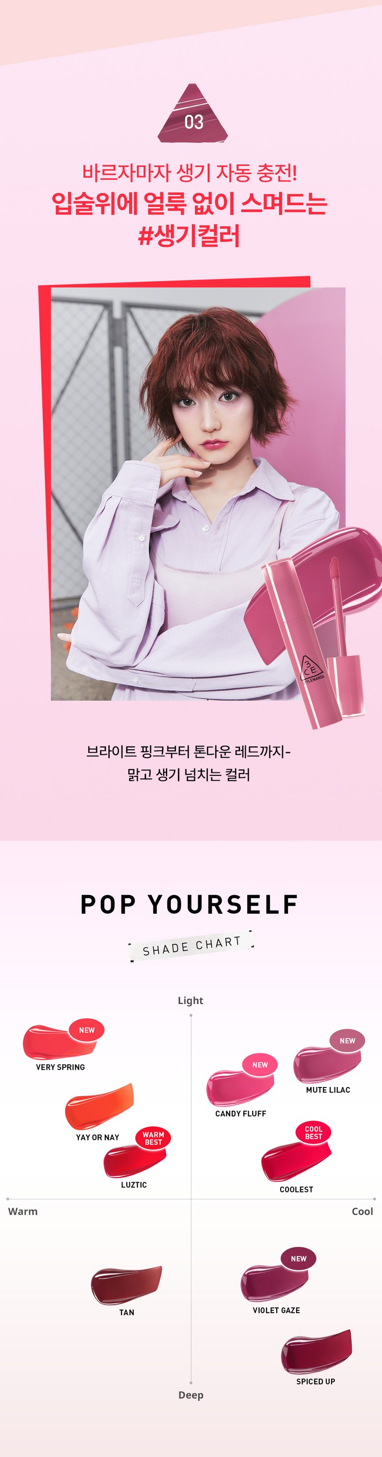 - K-Beauty Innovation: From the renowned Korean beauty brand 3CE Stylenanda, known for cutting-edge cosmetics and trendsetting looks that elevate your makeup game.