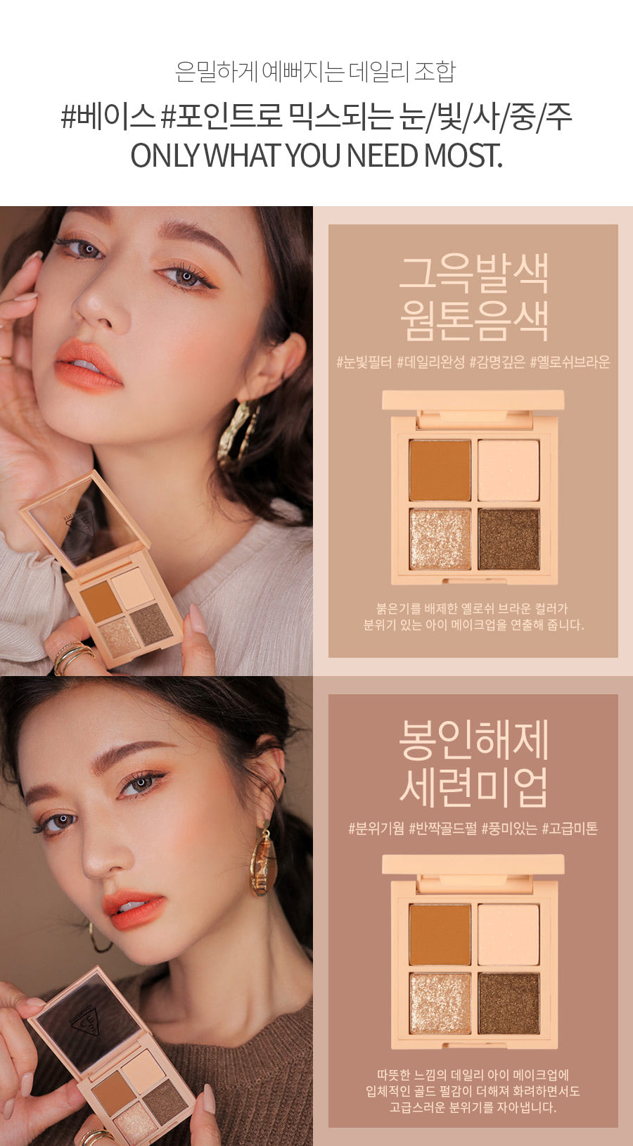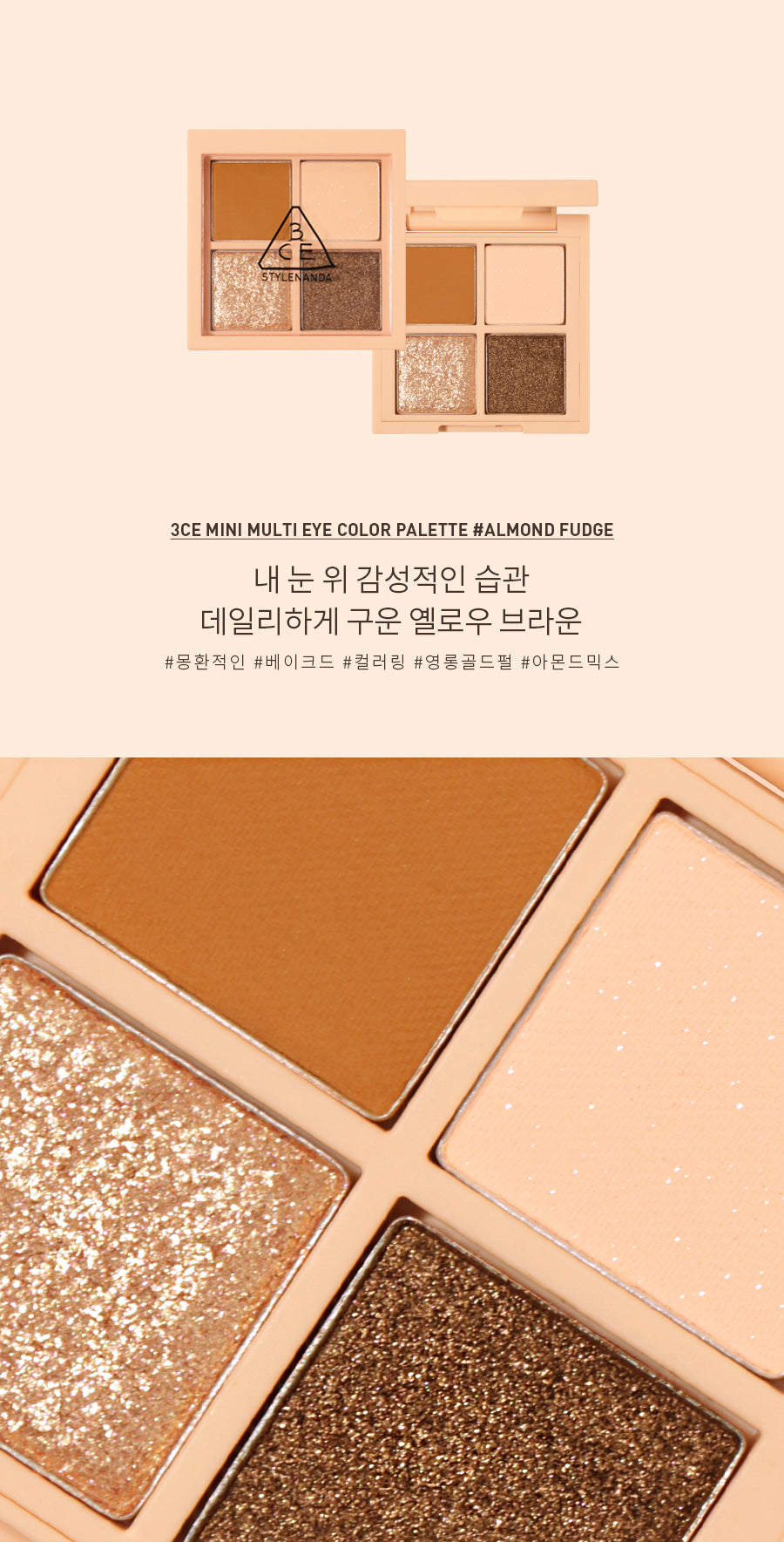 I recently tried the 3CE Mini Multi Eye Color Palette in Almond Fudge, and I must say, it exceeded my expectations. The range of yellow-brown shades is perfect for achieving a natural look that avoids any redness around my eyes. What I really appreciate is the high-pigment formula; just a small amount delivers vibrant color without needing multiple layers. The silky texture makes application seamless, and these shadows last all day long without creasing! Plus, its compact size fits perfectly in my purse for touch-ups on-the-go. This palette has quickly become an essential part of my daily makeup routine.