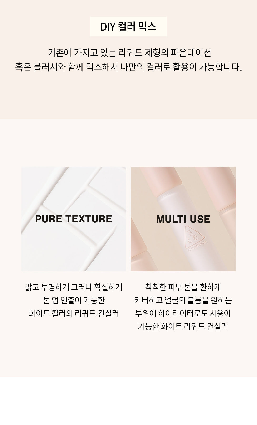 Discover a more proper base cover makeup with two colors of natural skin tone and a pure white color concealer.
