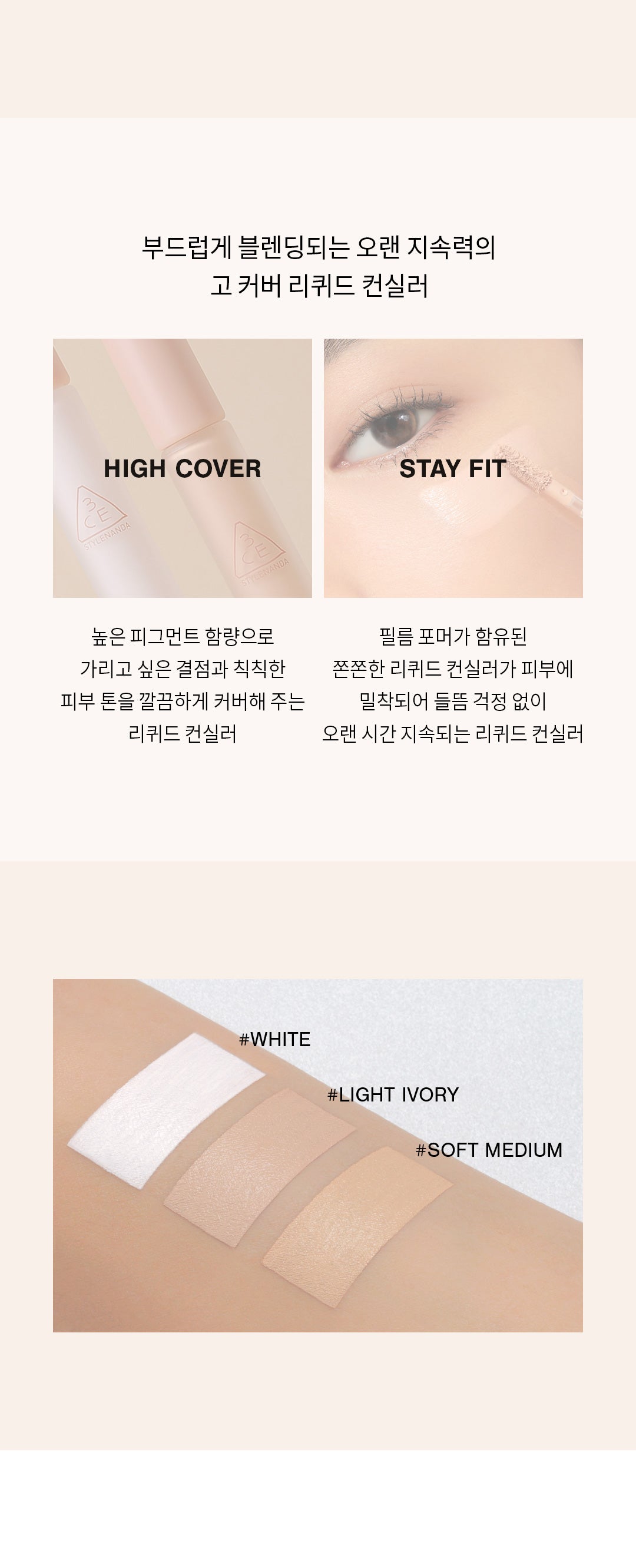 So I grabbed the 3CE Skin Fit Cover Liquid Concealer and wow, what a game changer! Honestly, I’ve been on this endless quest for something that brightens up my under-eye situation (hello late nights) and evens out those sneaky blemishes. The white one works wonders; like seriously turns back time! And it’s super blendable — not cakey at all. It feels nice too; no weird greasiness. Used it during brunch with friends, and they kept asking how my skin looked so fresh. You have to try mixing it a bit when you’re feeling fancy; trust me!