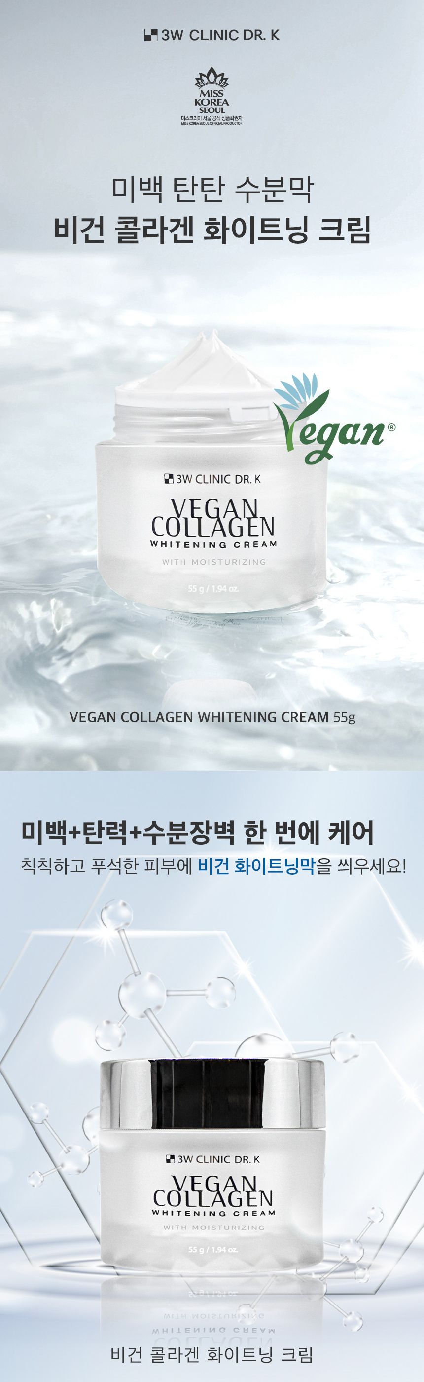 3W CLINIC Dr.K Vegan Collagen Whitening Cream 55g – Plant-Based Brightening Moisturizer
