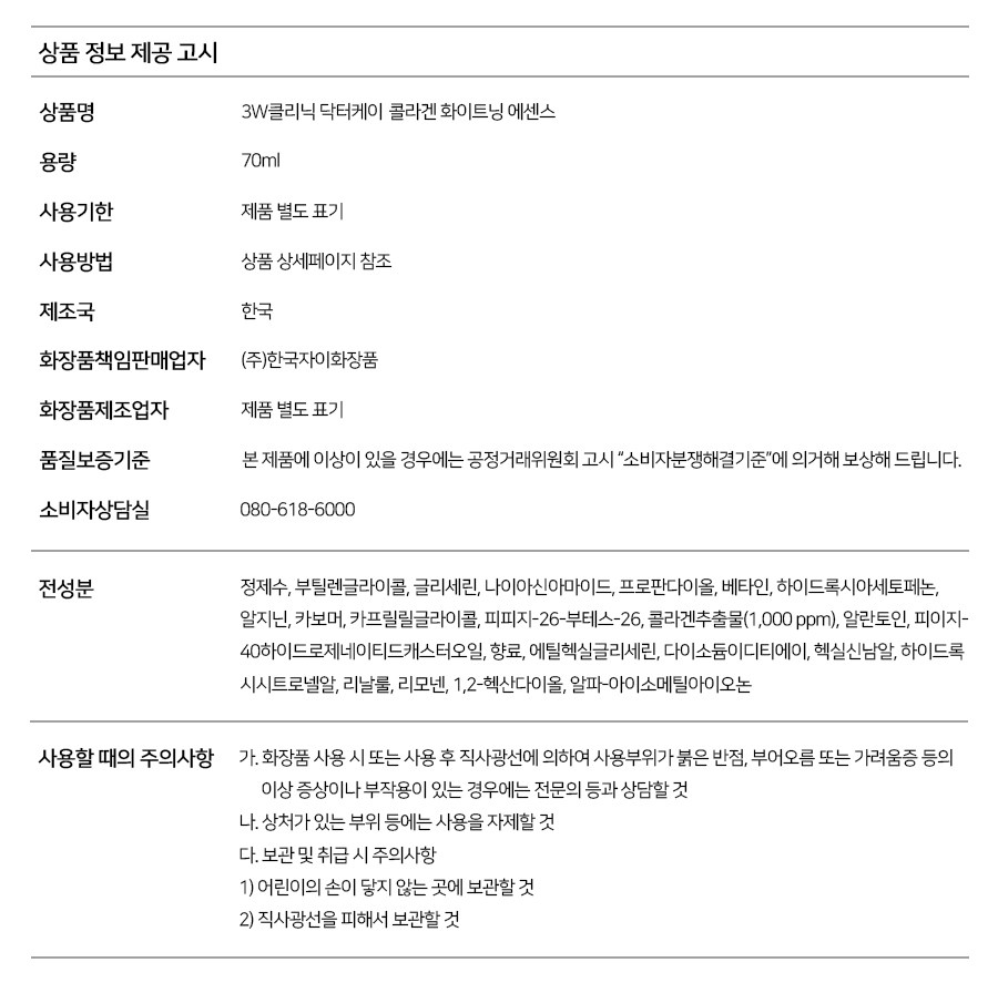 3W CLINIC Dr.K Vegan Collagen Whitening Essence 70ml – Plant-Based Brightening Serum