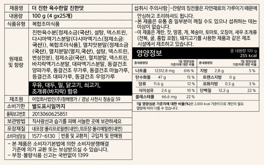 Thick meat broth [refined salt (Korea), sugar, dextrin, kelp extract powder {kelp extract (refined salt: Korea)}, complex seasoning food], anchovy flavor powder {refined salt (Korea), anchovy powder (anchovy, Korea) , sugar, dextrin, modified starch, refined salt (Korea), anchovy powder, dextrin, clam extract powder, green onion extract powder, freeze-dried onion powder, freeze-dried radish powder, freeze-dried garlic powder, freeze-dried green onion powder, freeze-dried burdock powder