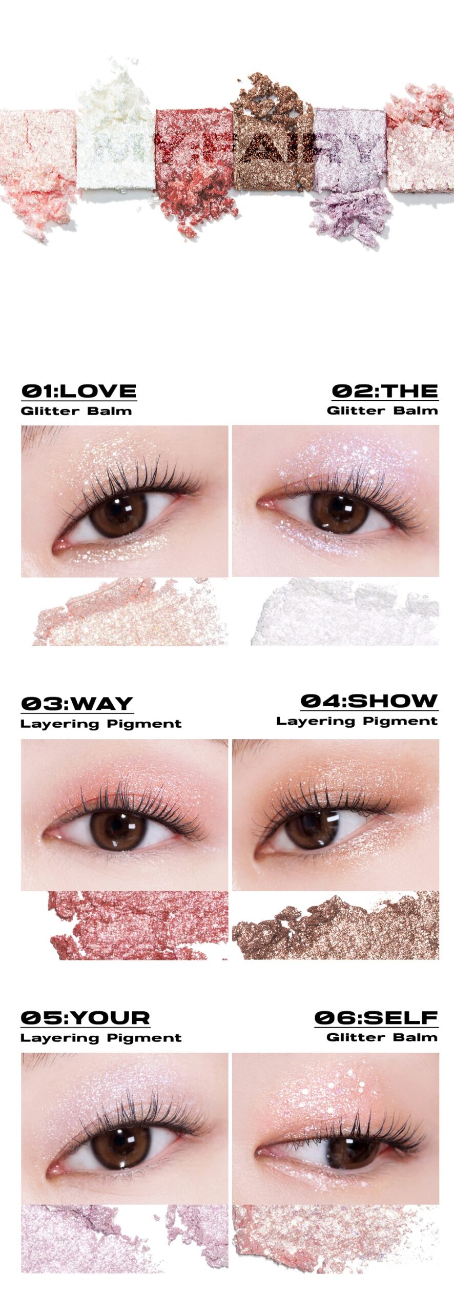 Transform your look effortlessly from daily elegance to special occasions with this versatile makeup palette. Designed to enhance your natural beauty with just one touch, it features a range of vivid and colorful glitter finishes that offer something unique for every moment.