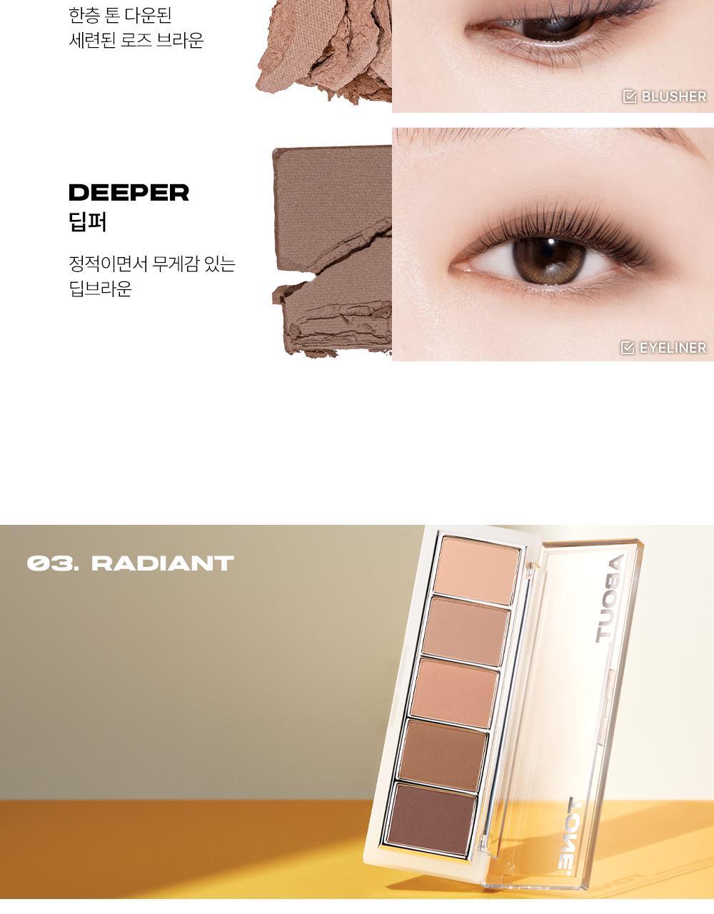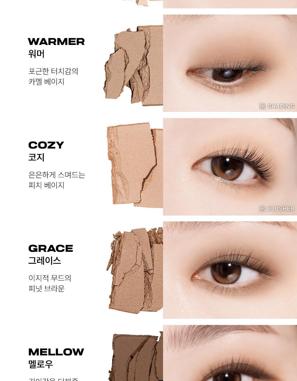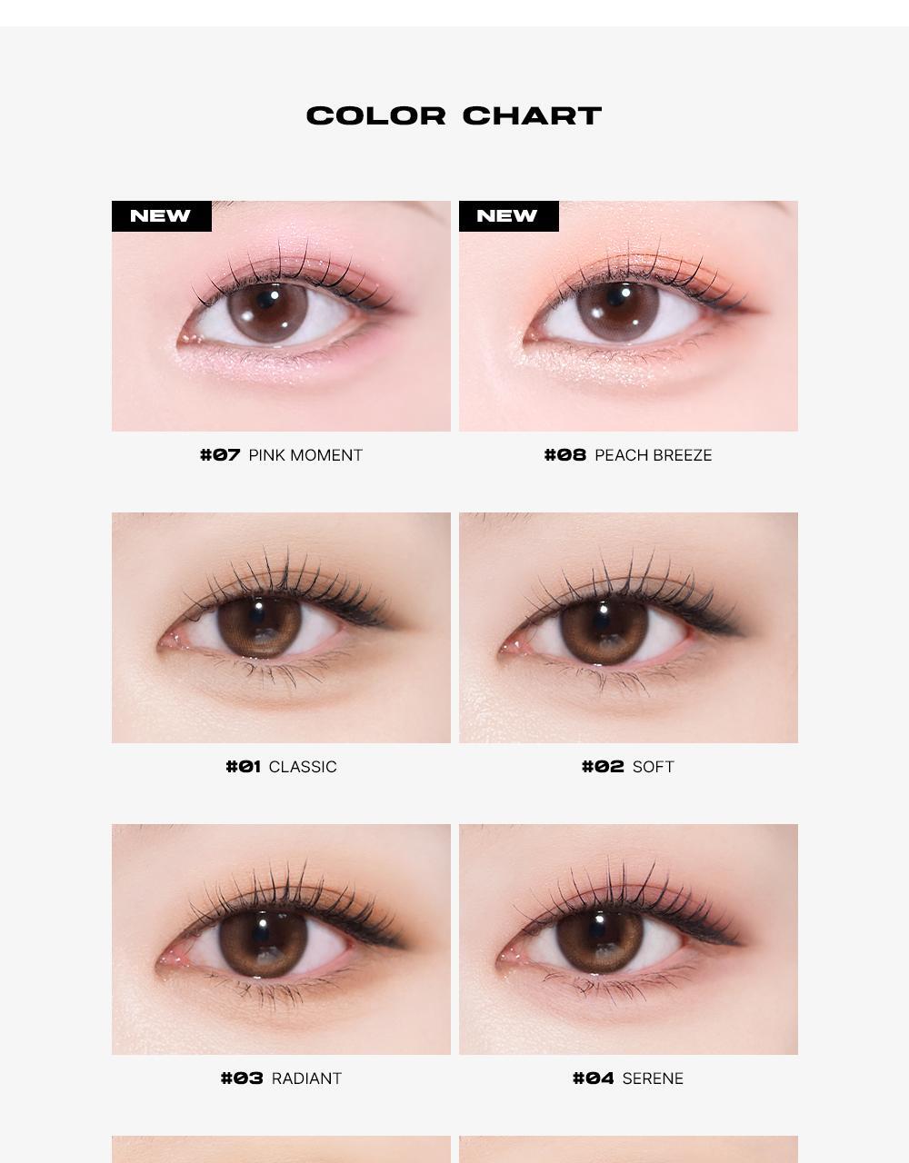 Experience a beautifully balanced selection of neutral shades that enhance your natural beauty. These shades deliver a clear and vivid color payoff without making your eyes appear puffy, ensuring a polished and fresh look.