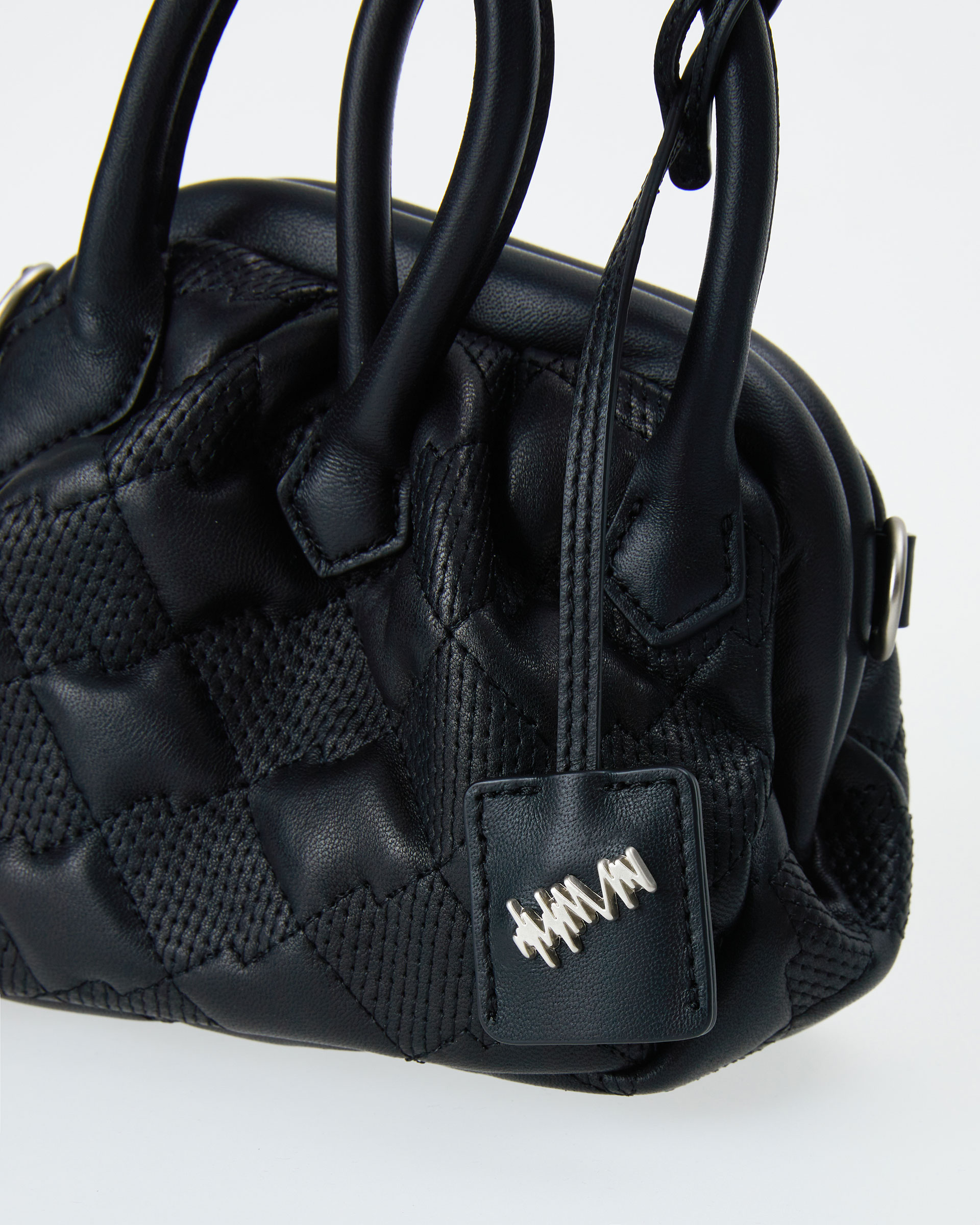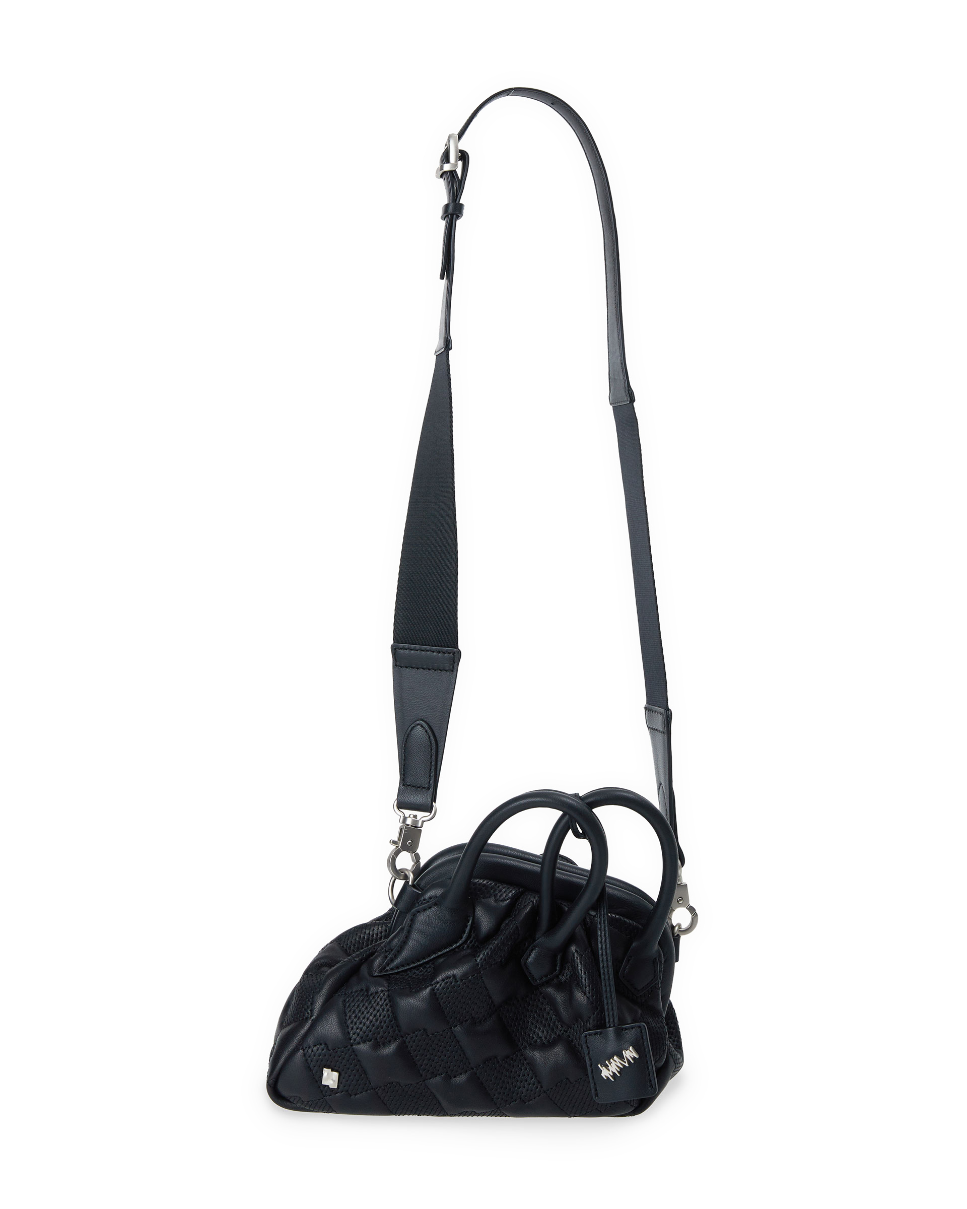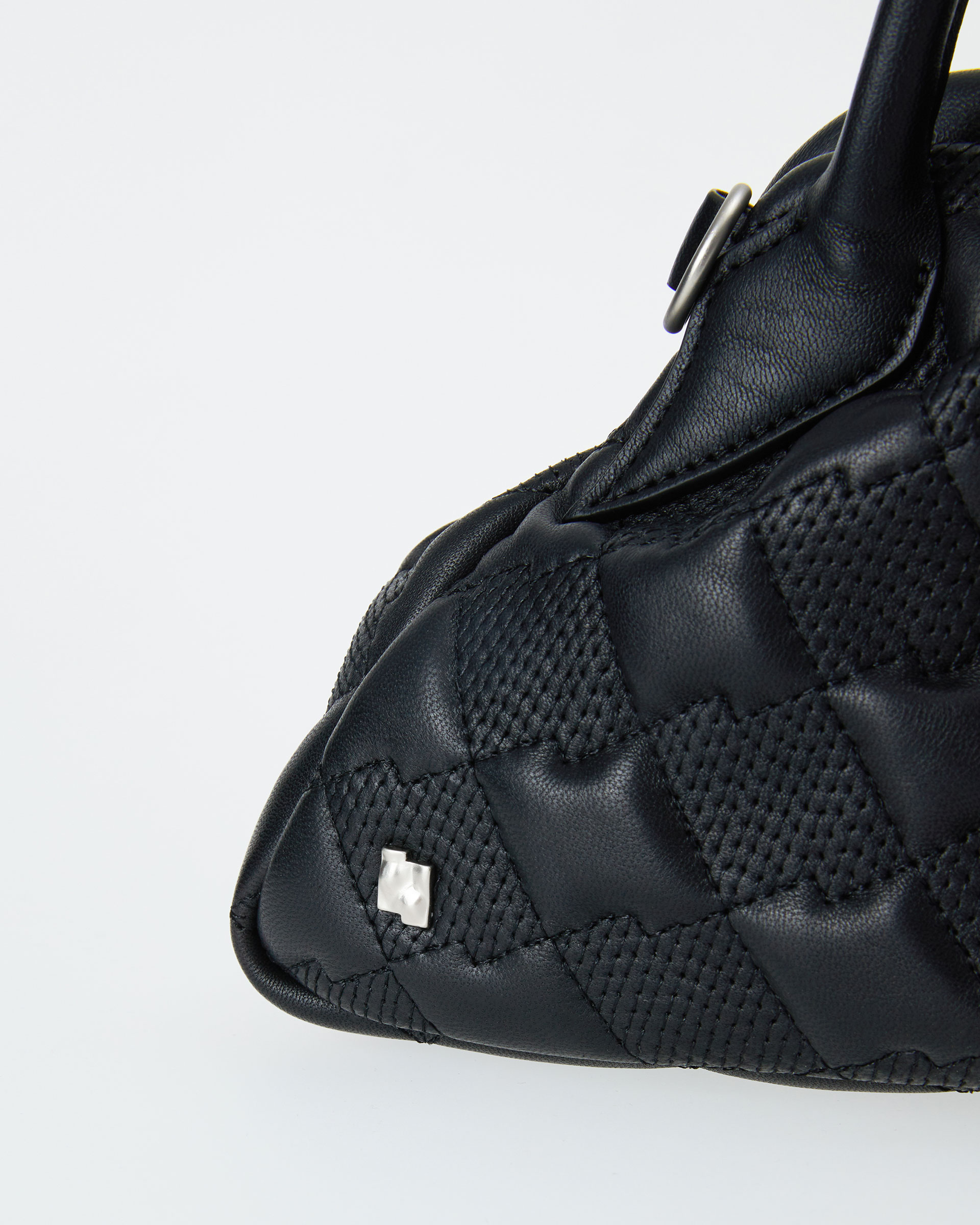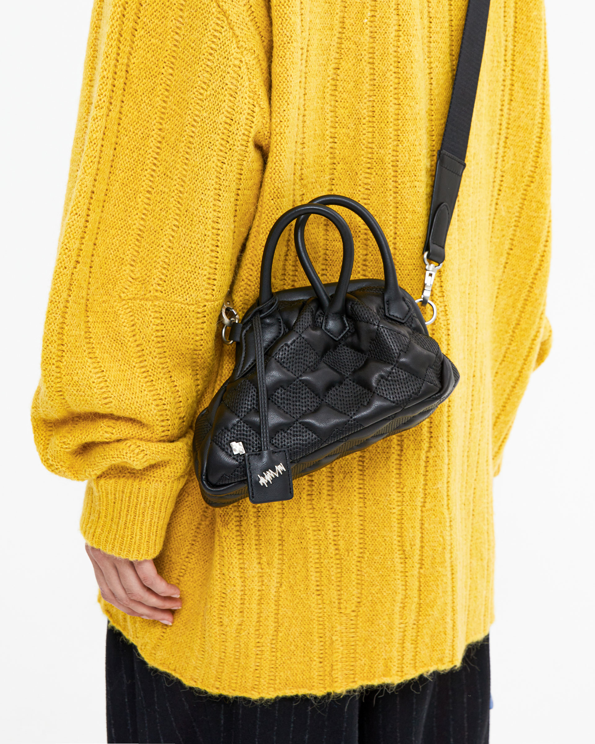 Crafted from luxurious lambskin, the Tenit Callio Tote features an eye-catching ‘Tetris motif’ quilted pattern that adds a distinctive texture and playful elegance. Its compact yet surprisingly spacious design is perfect for carrying your daily essentials with ease. The bold, comfortable top handles offer a classic carry, while the detachable and adjustable cross-body strap provides versatile styling options for hands-free convenience, transforming it into a chic ADERERROR crossbody bag. A charming zigzag metal detail accentuates the bag, adding a subtle touch of ADERERROR’s signature avant-garde aesthetic.