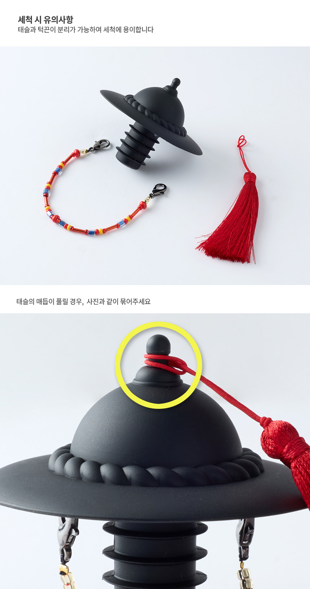 - Detachable tassel and chin strap for easy cleaning