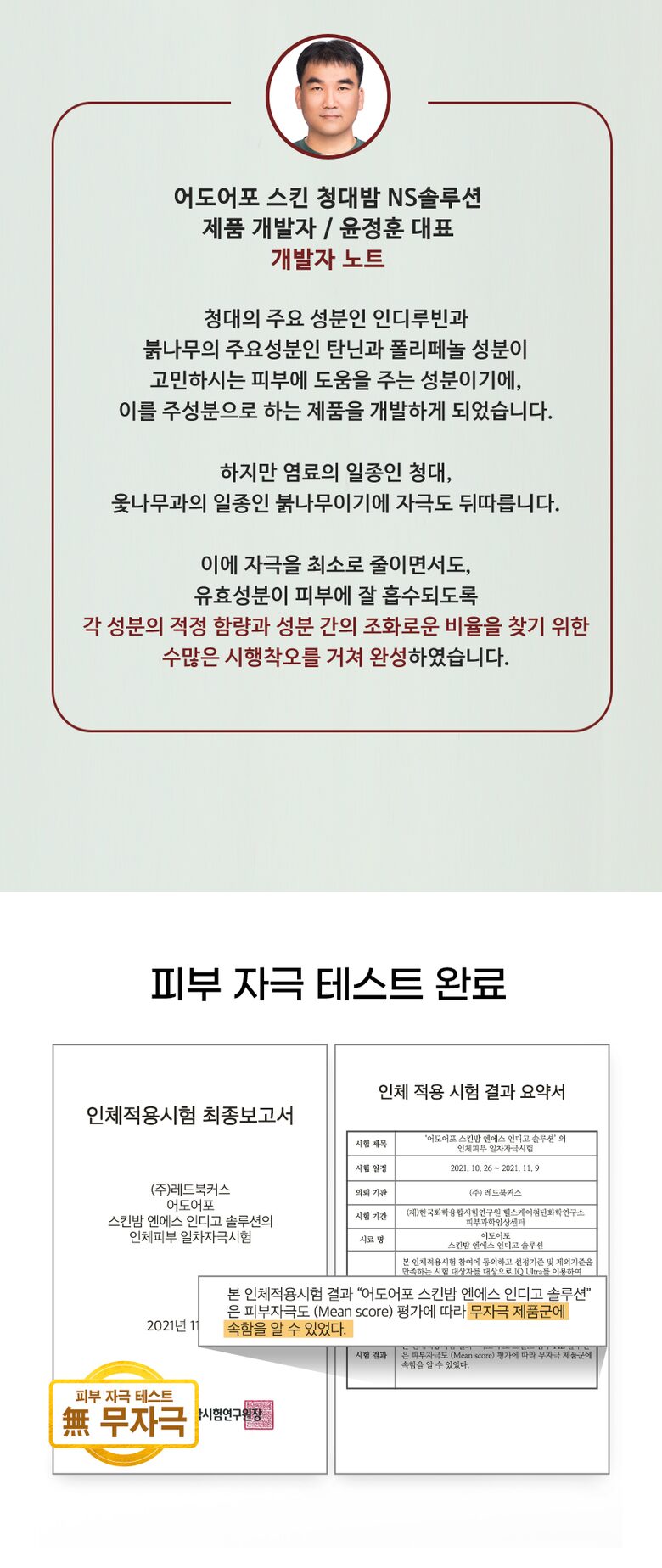 - Developer’s Note by Yoon Jeong-Hoon: Understanding the potential irritations from green indigo and Rhus Javanica, this product has been meticulously formulated through extensive trials to minimize irritation while maximizing absorption and effectiveness of the active ingredients.